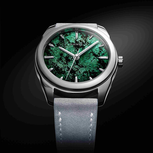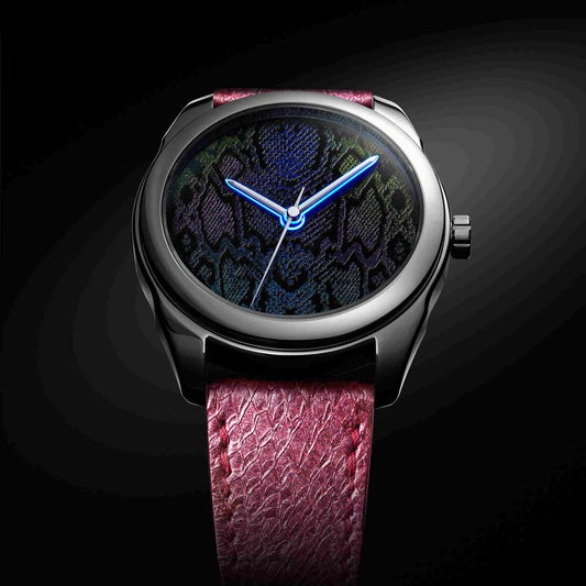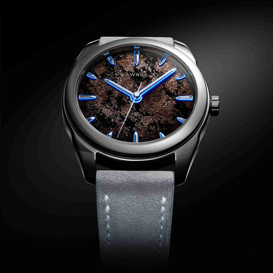 職人の手で一枚ずつ生み出されるダイヤルは、光の角度で繊細な輝きを放ちます。