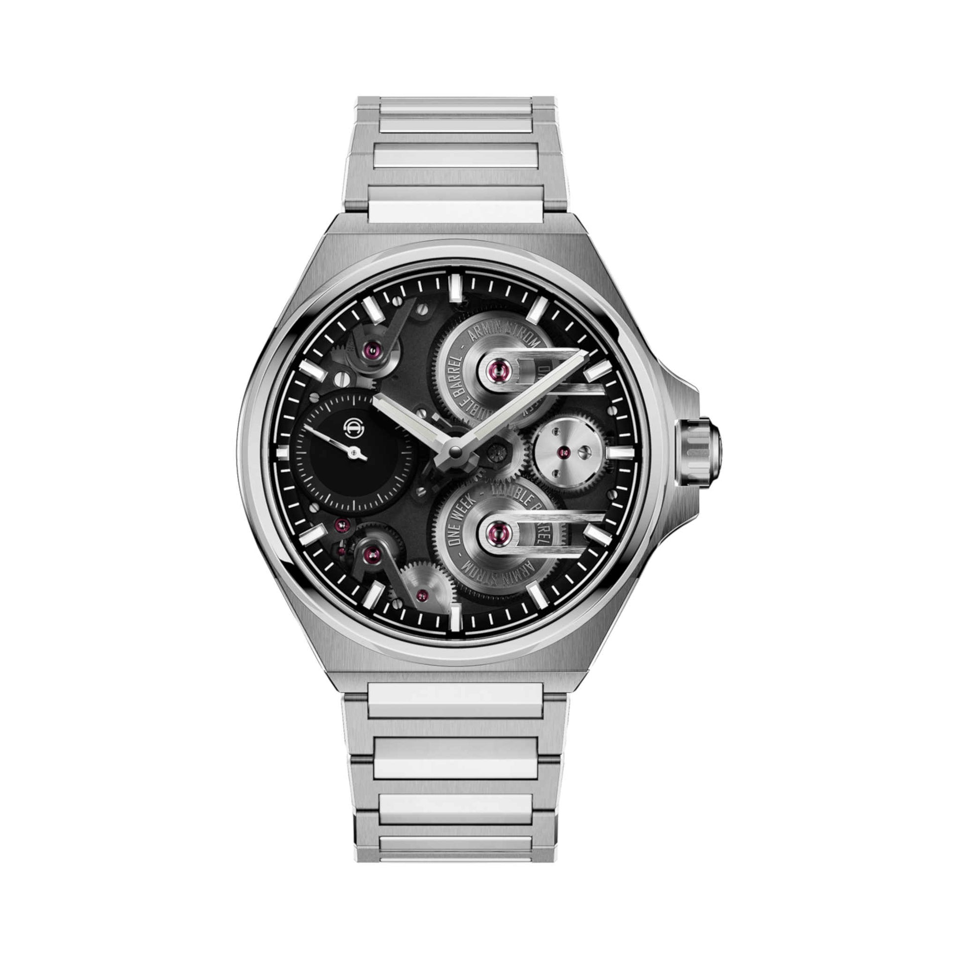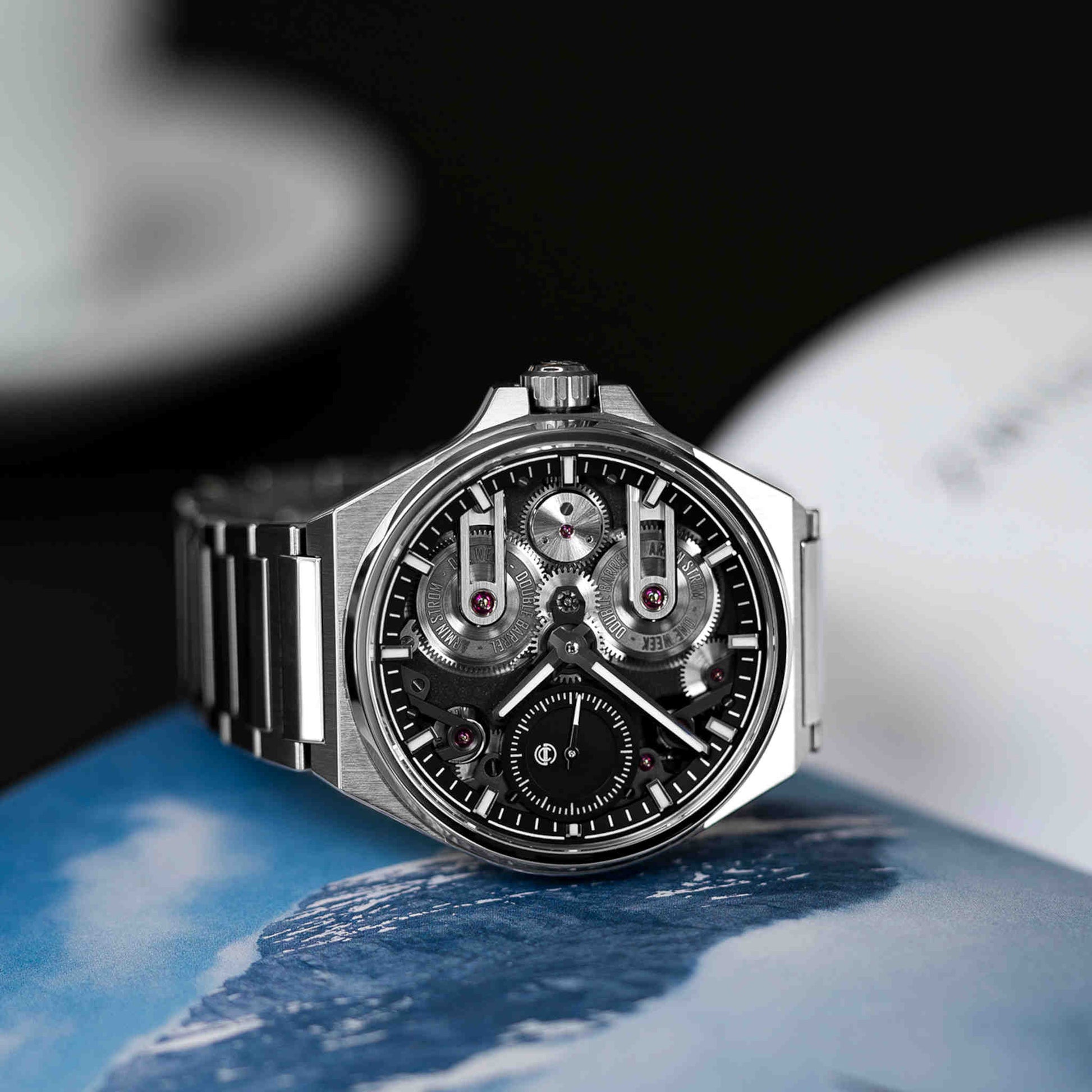 2010年に発表された初代自社ムーブメントを、ブランド創立15周年にあたる2024年に再解釈。新たな建築的デザインを纏い、独自のムーブメント哲学「Science of Movement」を体現します。