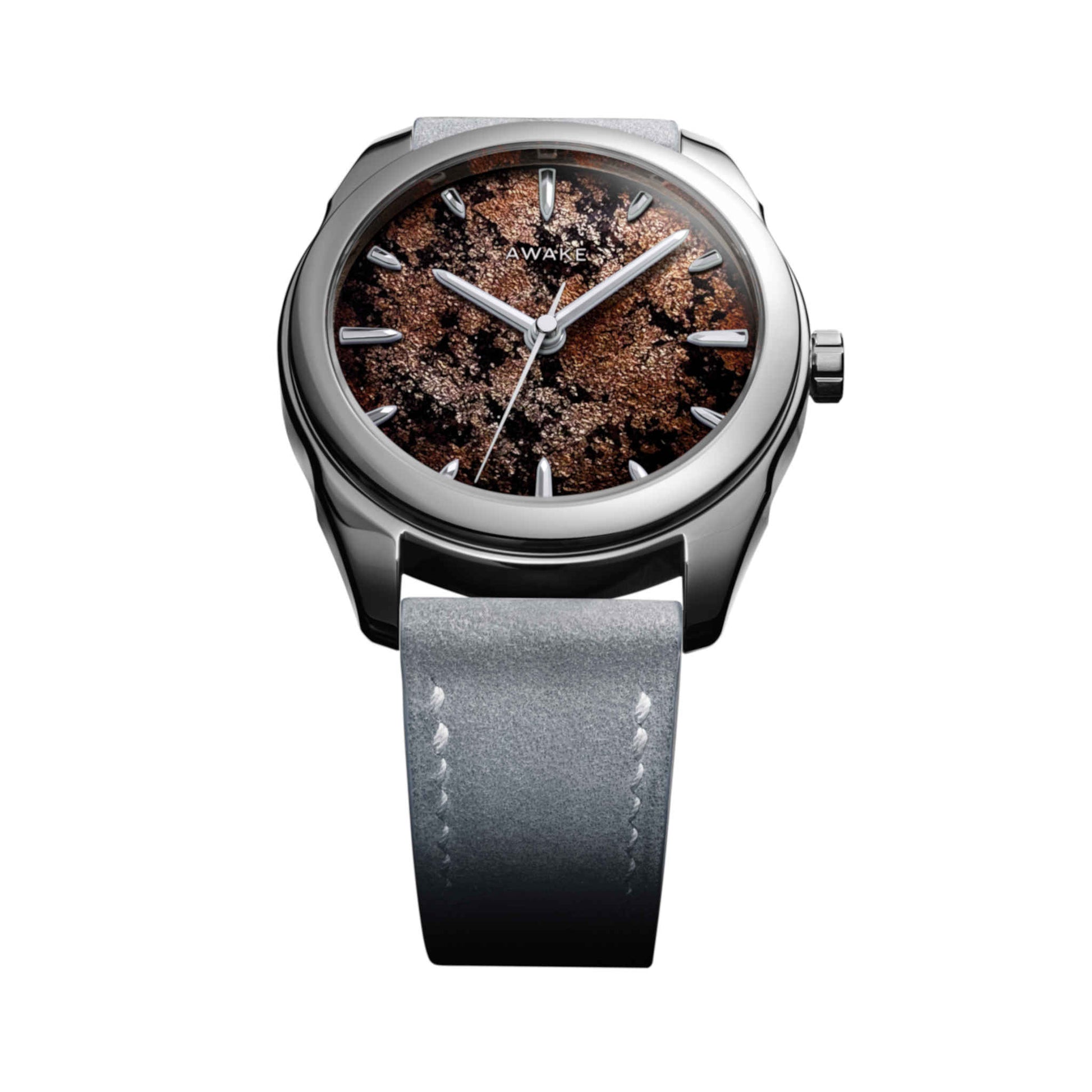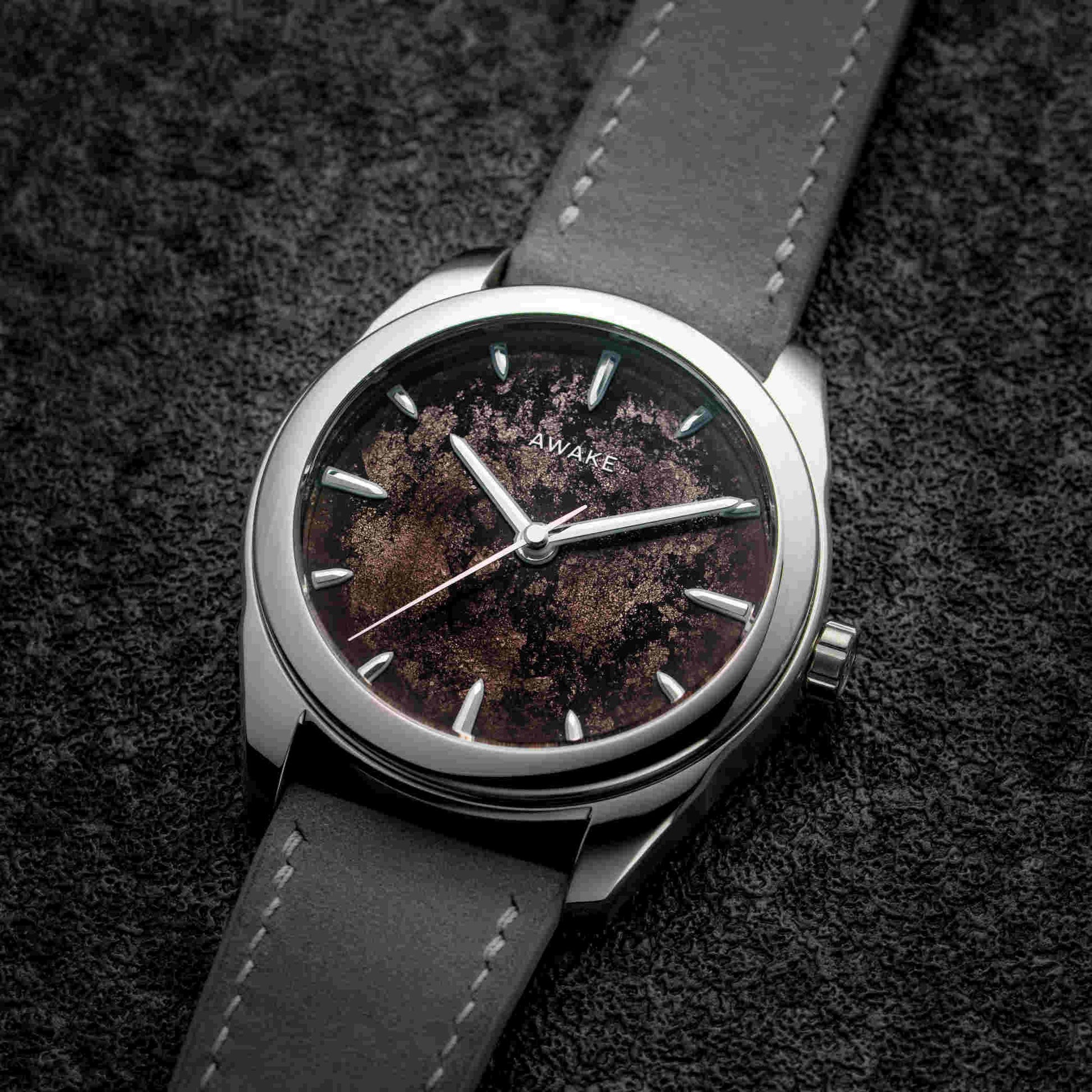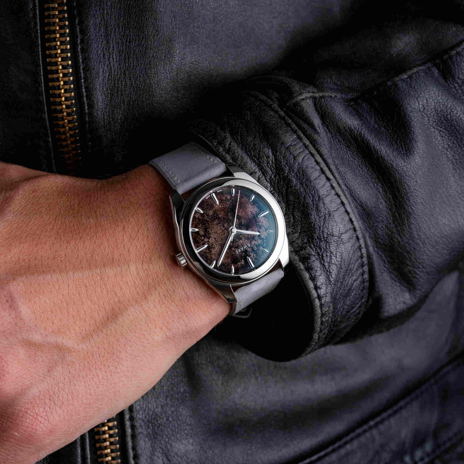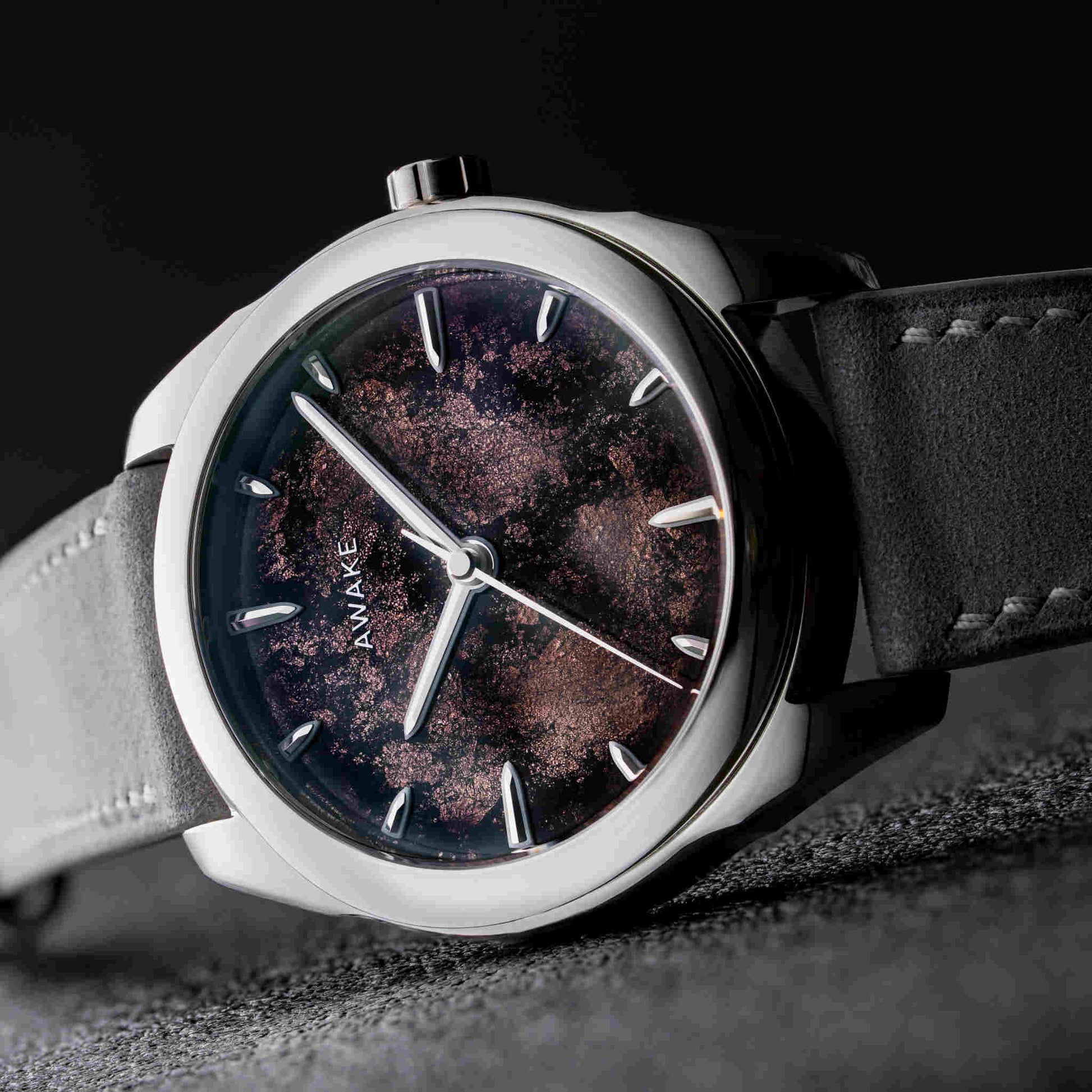 温もりあるモカブラウンのダイヤルは、大地の豊かさと根源的な力強さを表現しています。ベトナム伝統の漆芸「ソンマイ」と純銀箔を融合させた新技法「フロステッドリーフ」により、奥行きと霜のような光沢が生まれ、一本ごとに異なる表情を見せます。15時間にわたる手仕事とスイス製La Joux-Perret G101自動巻きムーブメントが結実したこのモデルは、世界限定50本の特別なアートピースです。