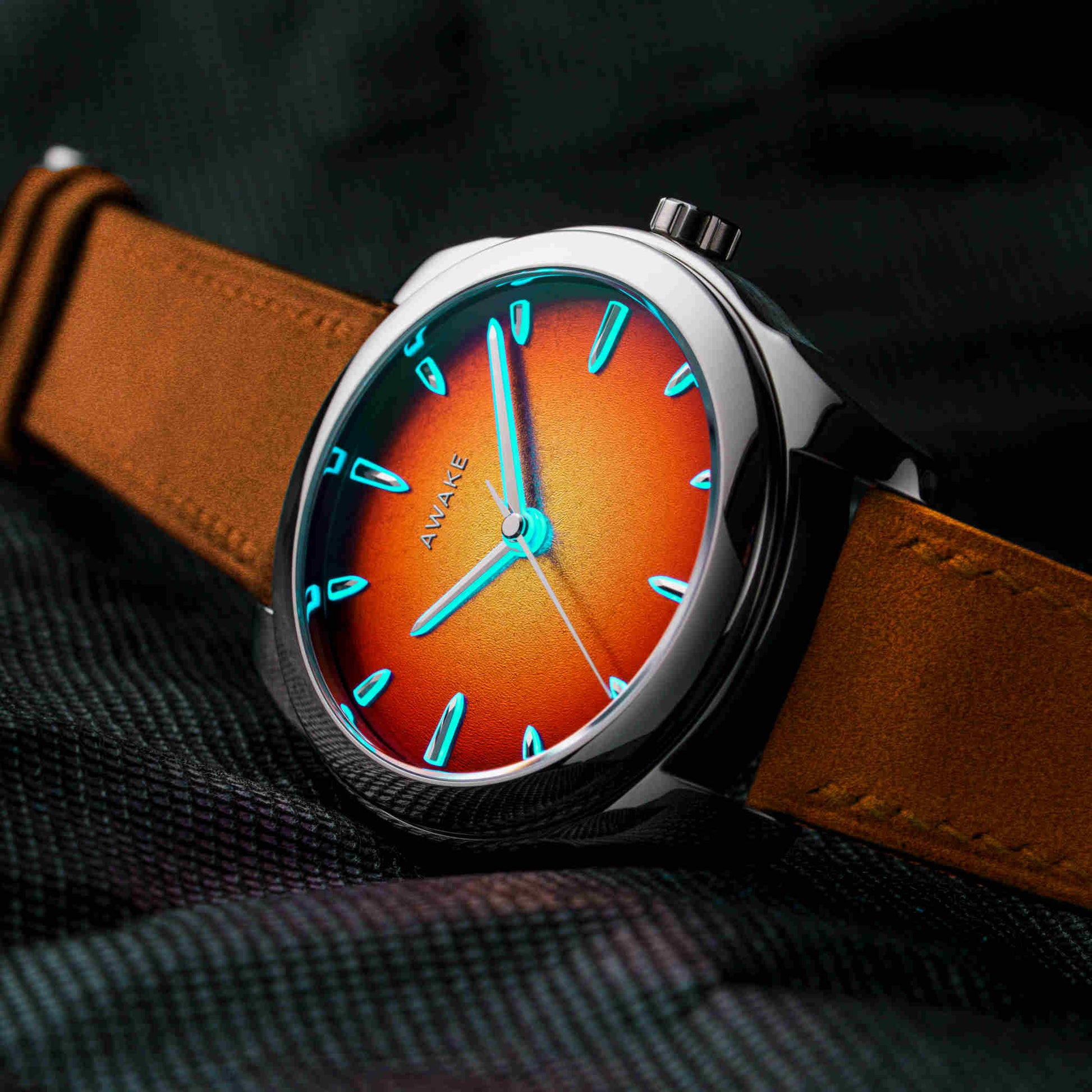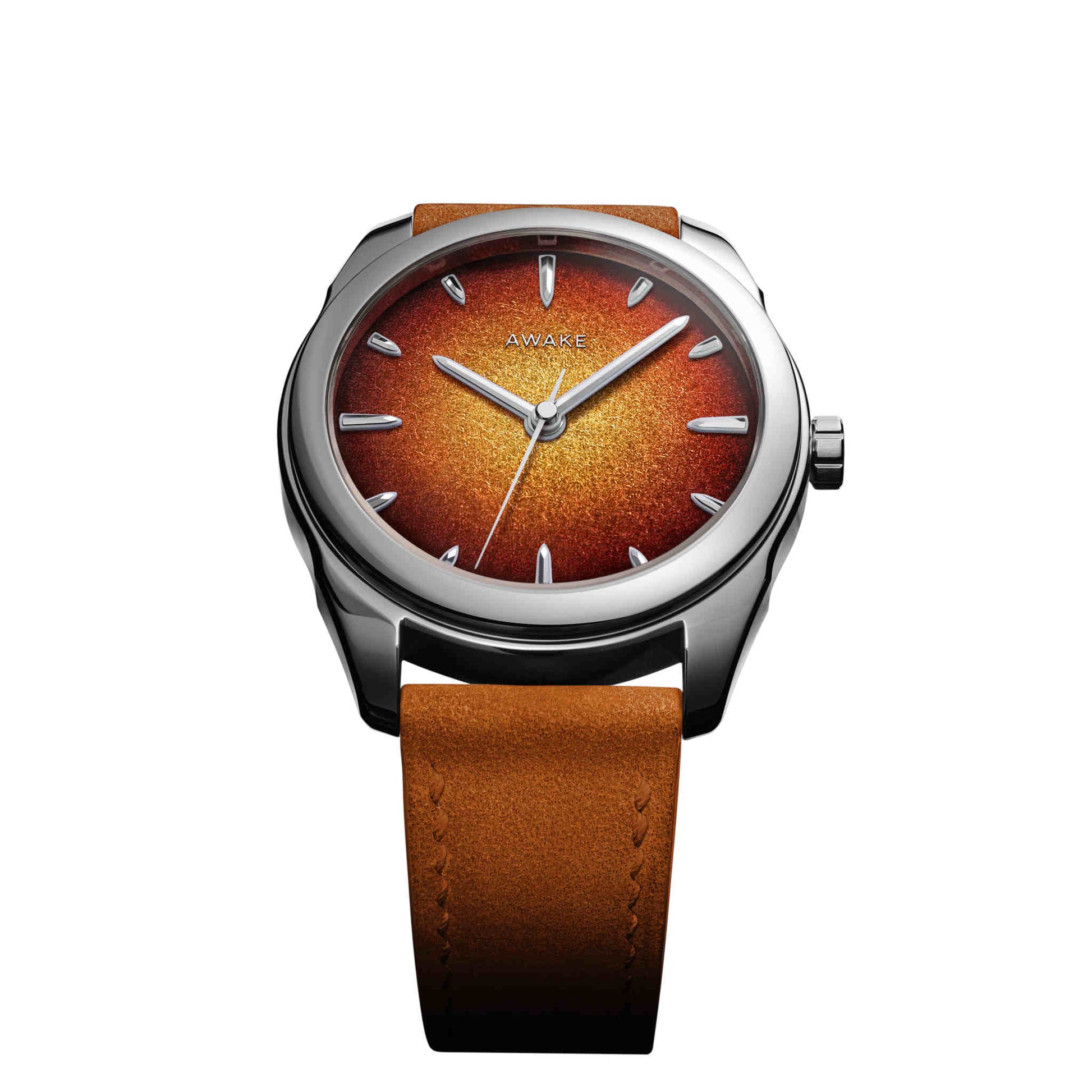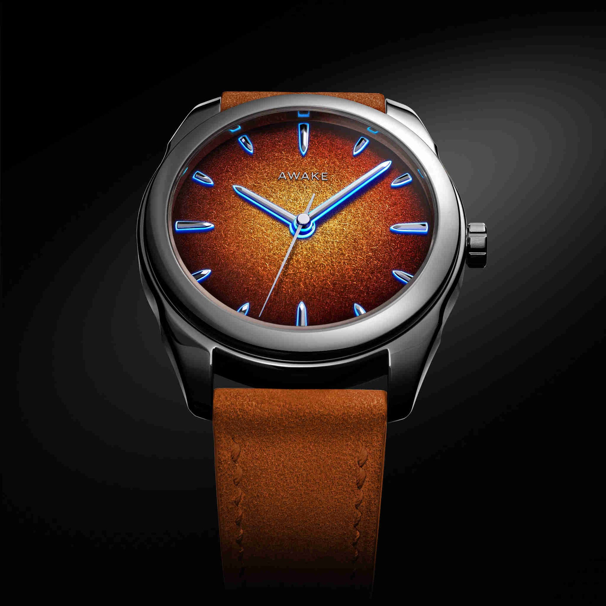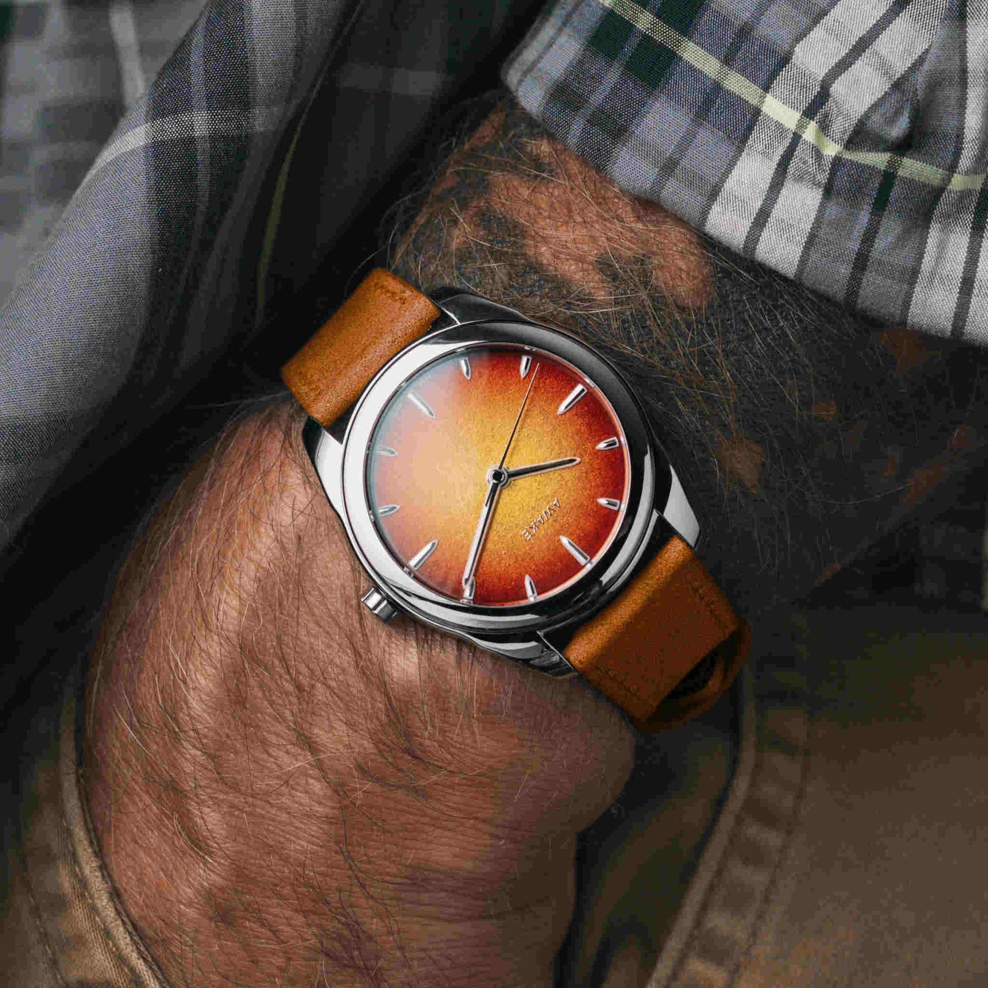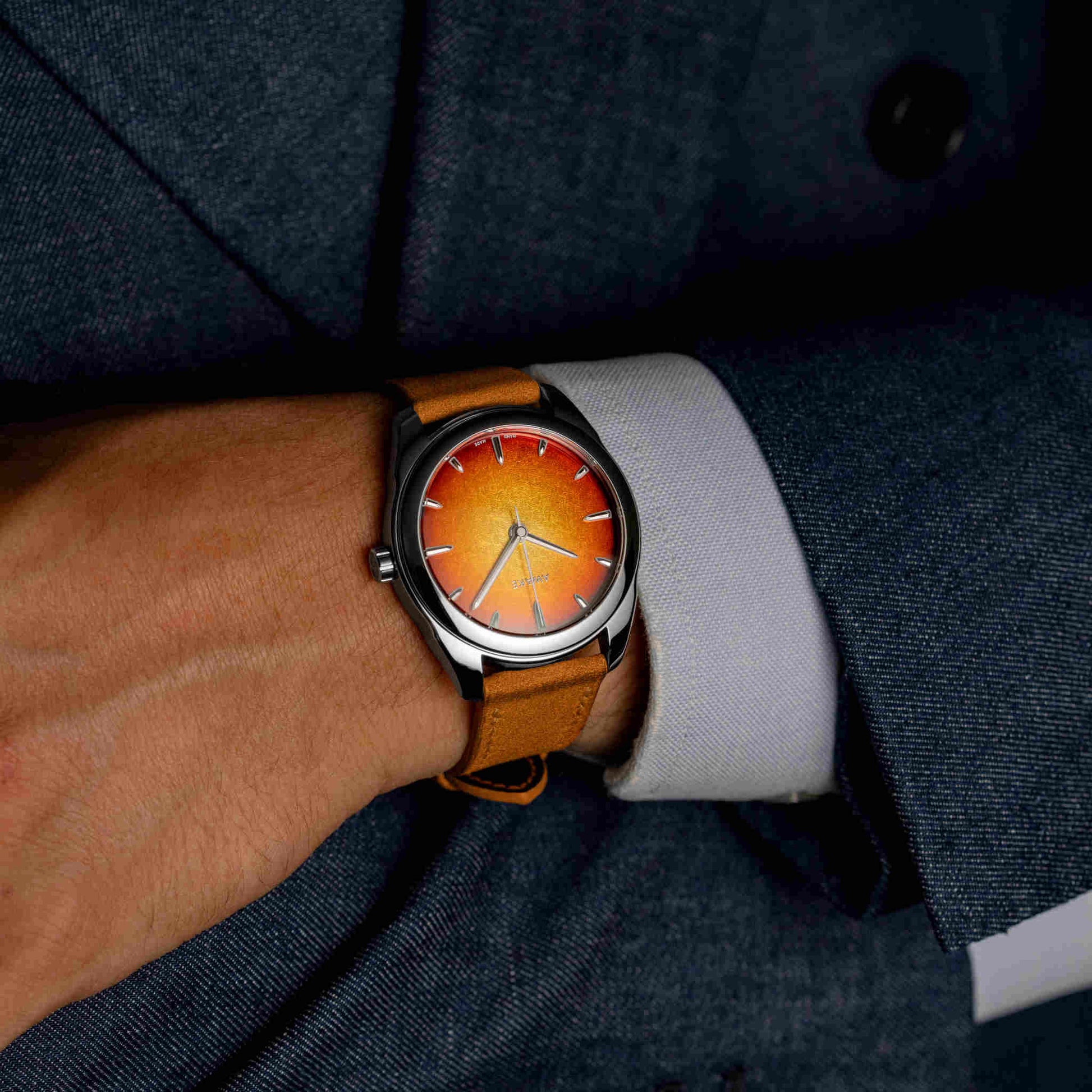 朝夕の「ゴールデンアワー」に見られる柔らかな光の温度を、漆の深みと金属の反射で再構築。ハノイの職人による完全手仕上げで仕上げられた文字盤は、ひとつとして同じものがありません。