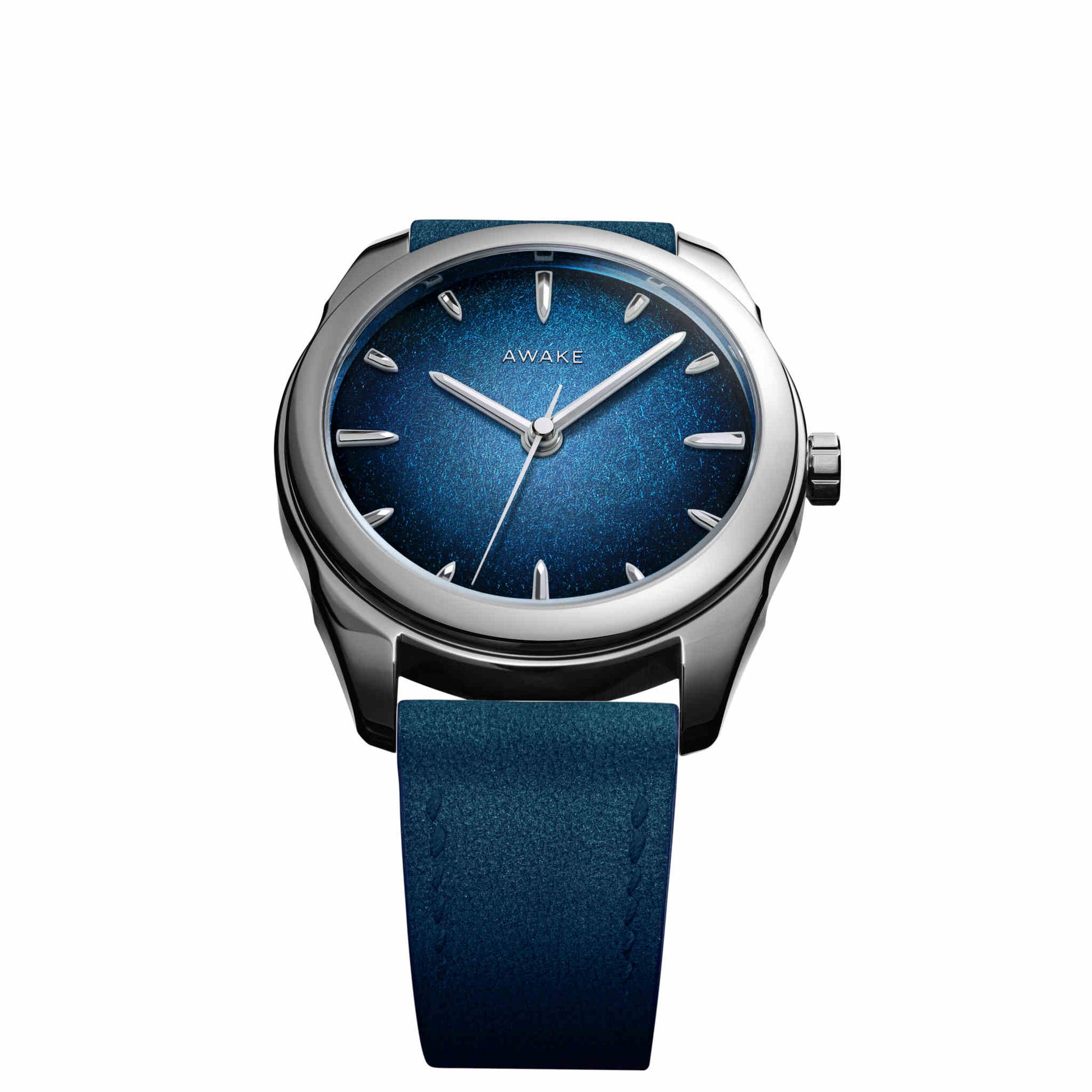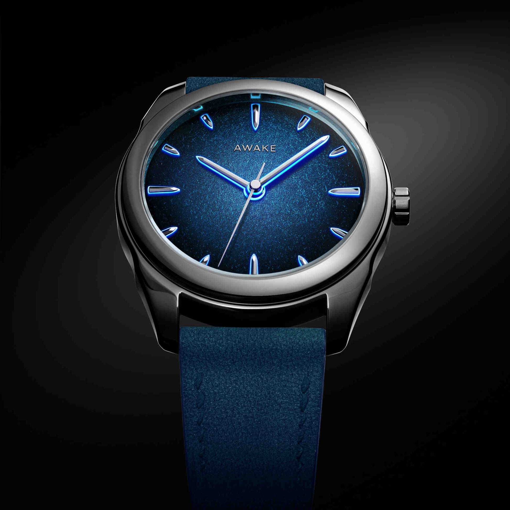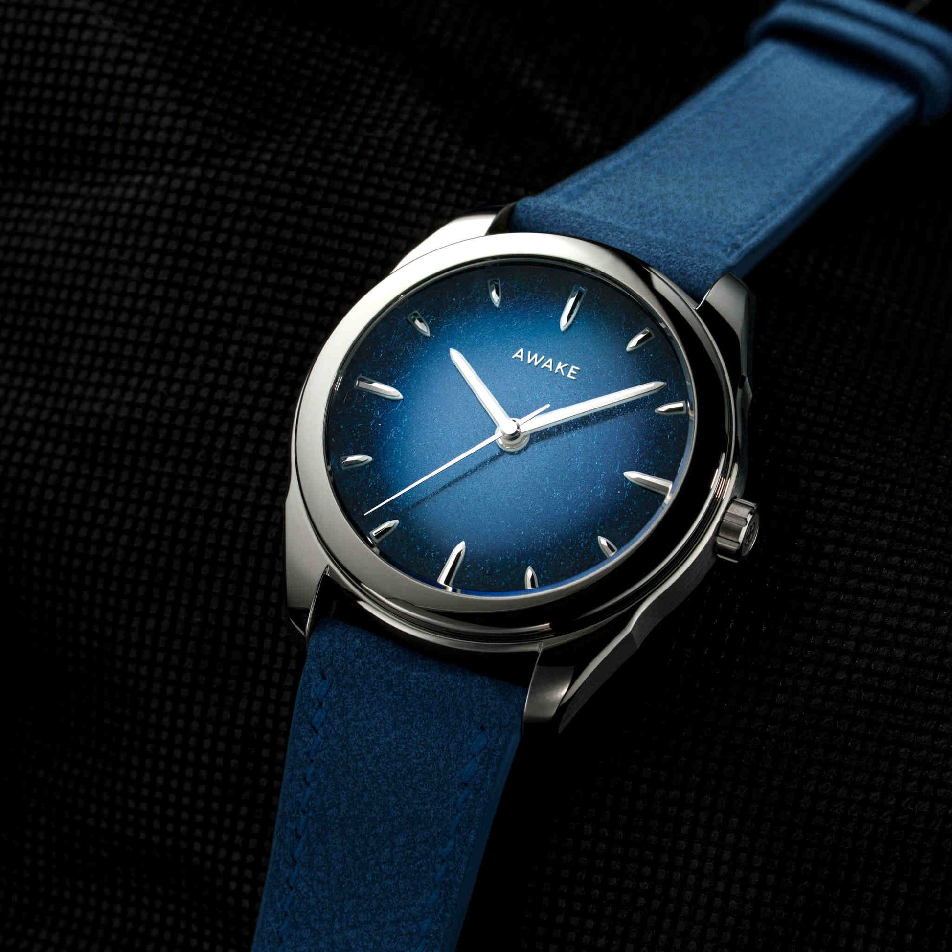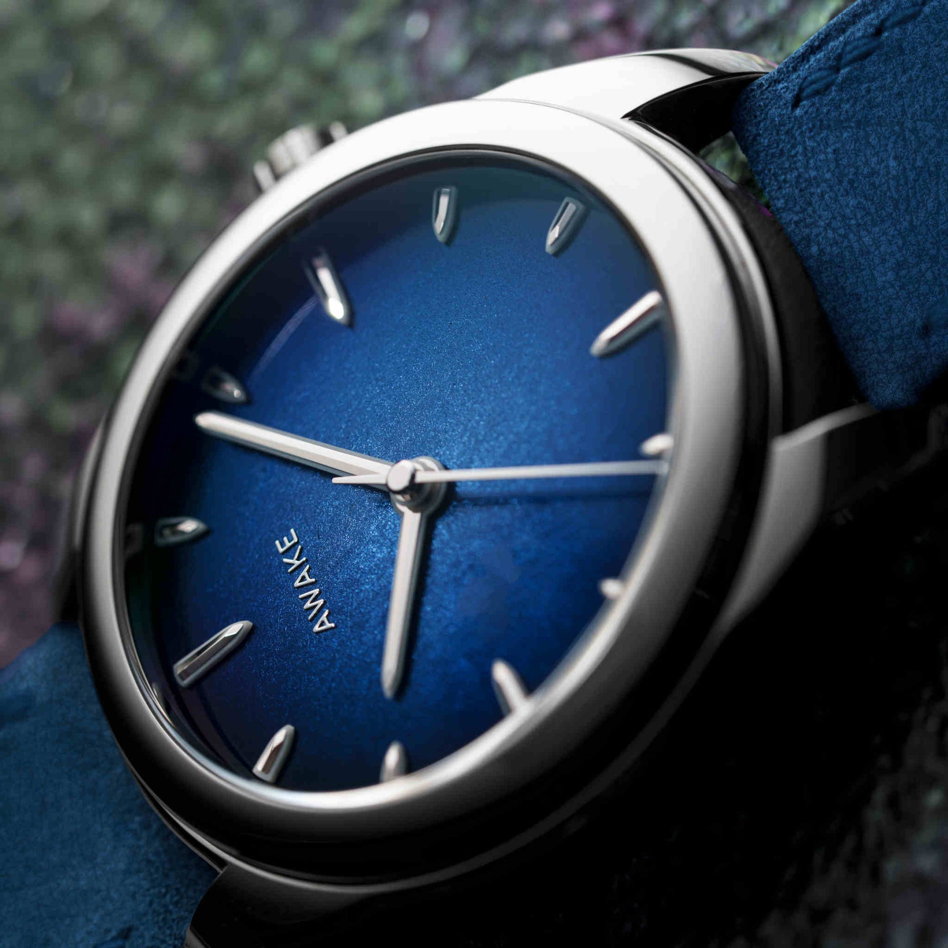 夜空を照らす月光のように、漆の層を透過した銀箔の光が穏やかに揺らめきます。青のグラデーションは職人の手による自然な筆致で生まれ、光の角度によって透明感を変える設計。見る時間や光源によって表情を変えるこのダイヤルは、まさに“時間を映す鏡”のようです。内部にはスイス・ラ・ジューペレ製キャリバーG101を搭載し、約68時間のパワーリザーブを確保。漆芸と精密工学が響き合う、静かな存在感を放ちます。