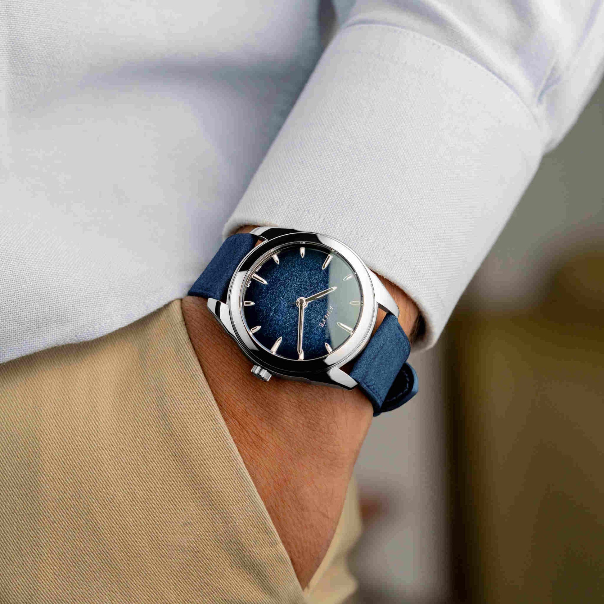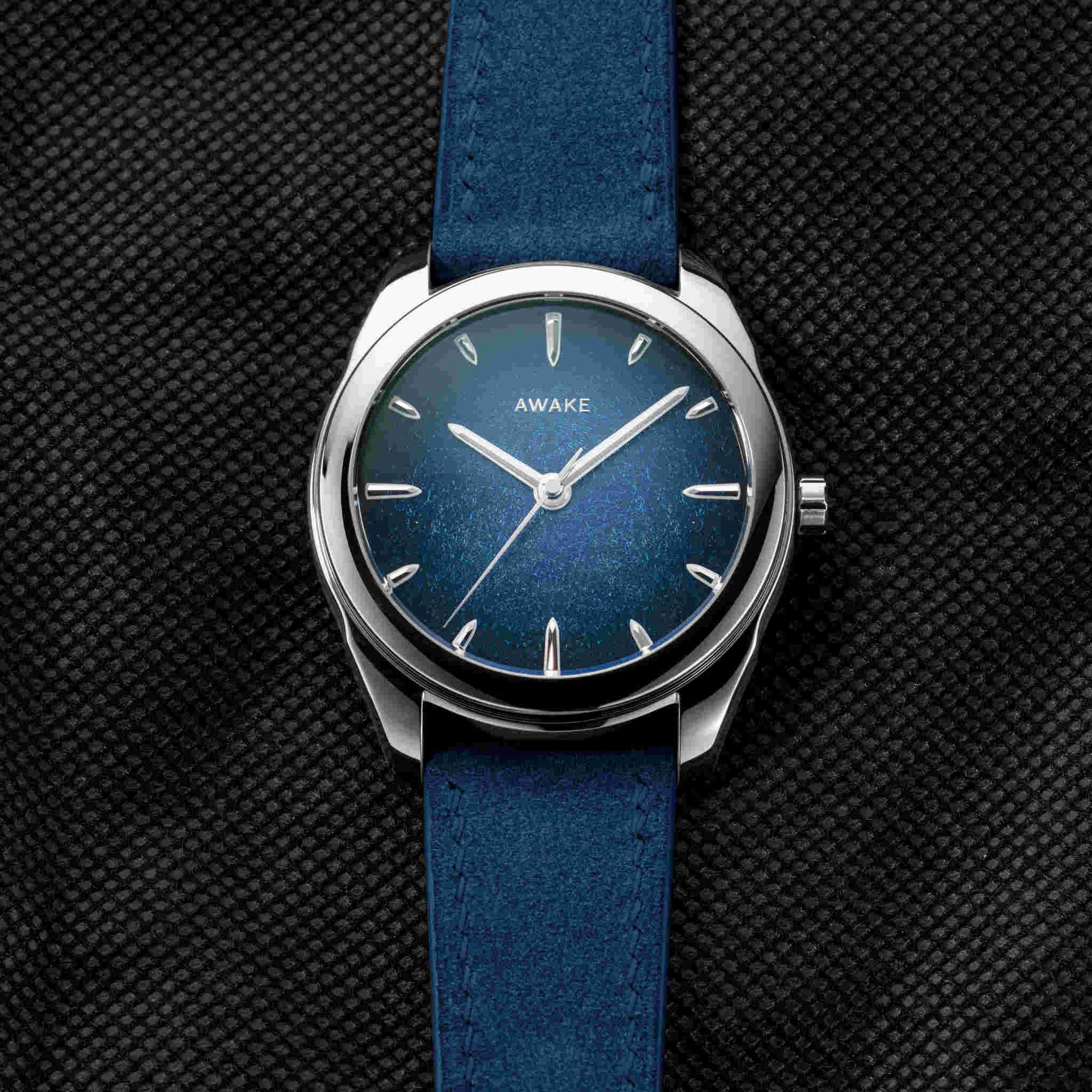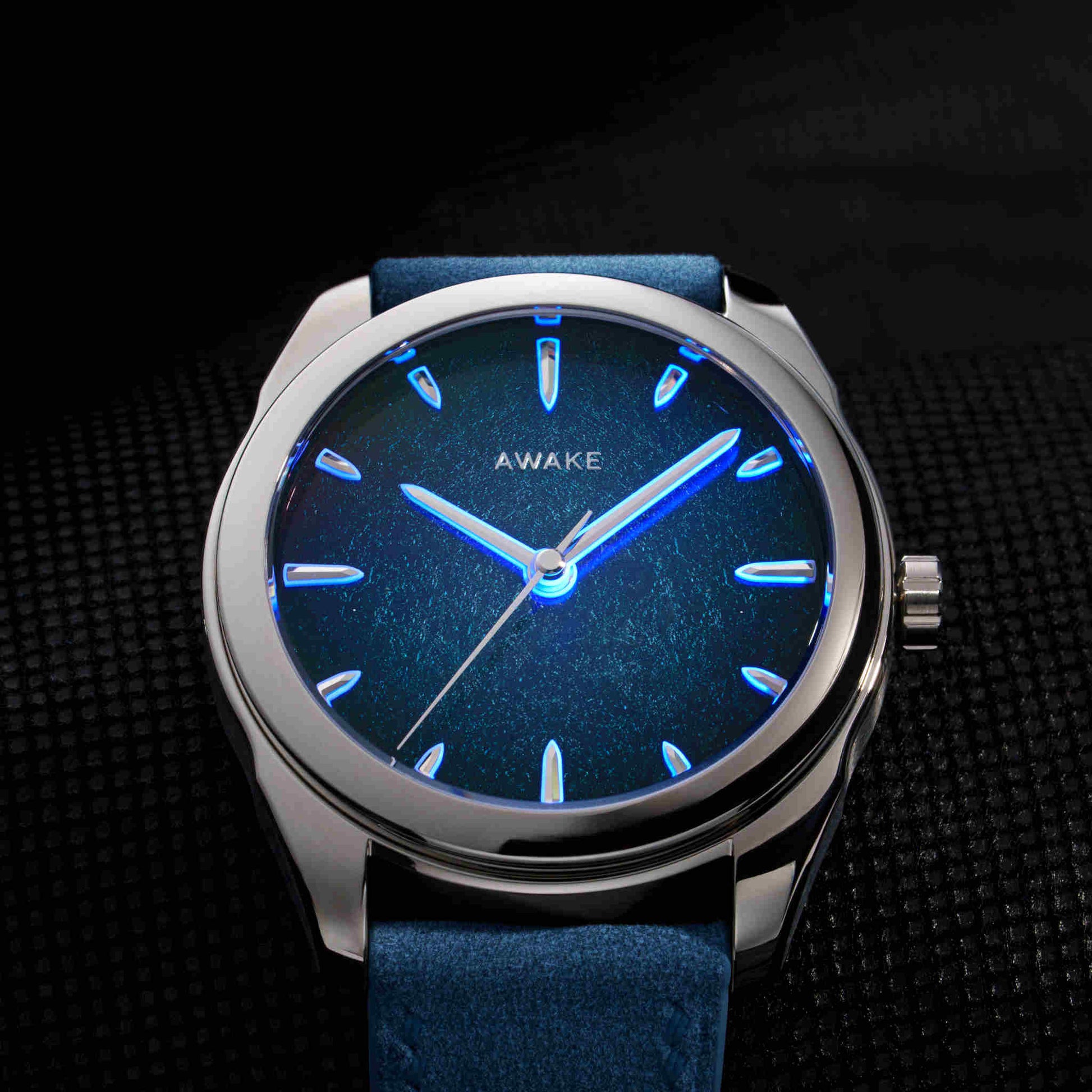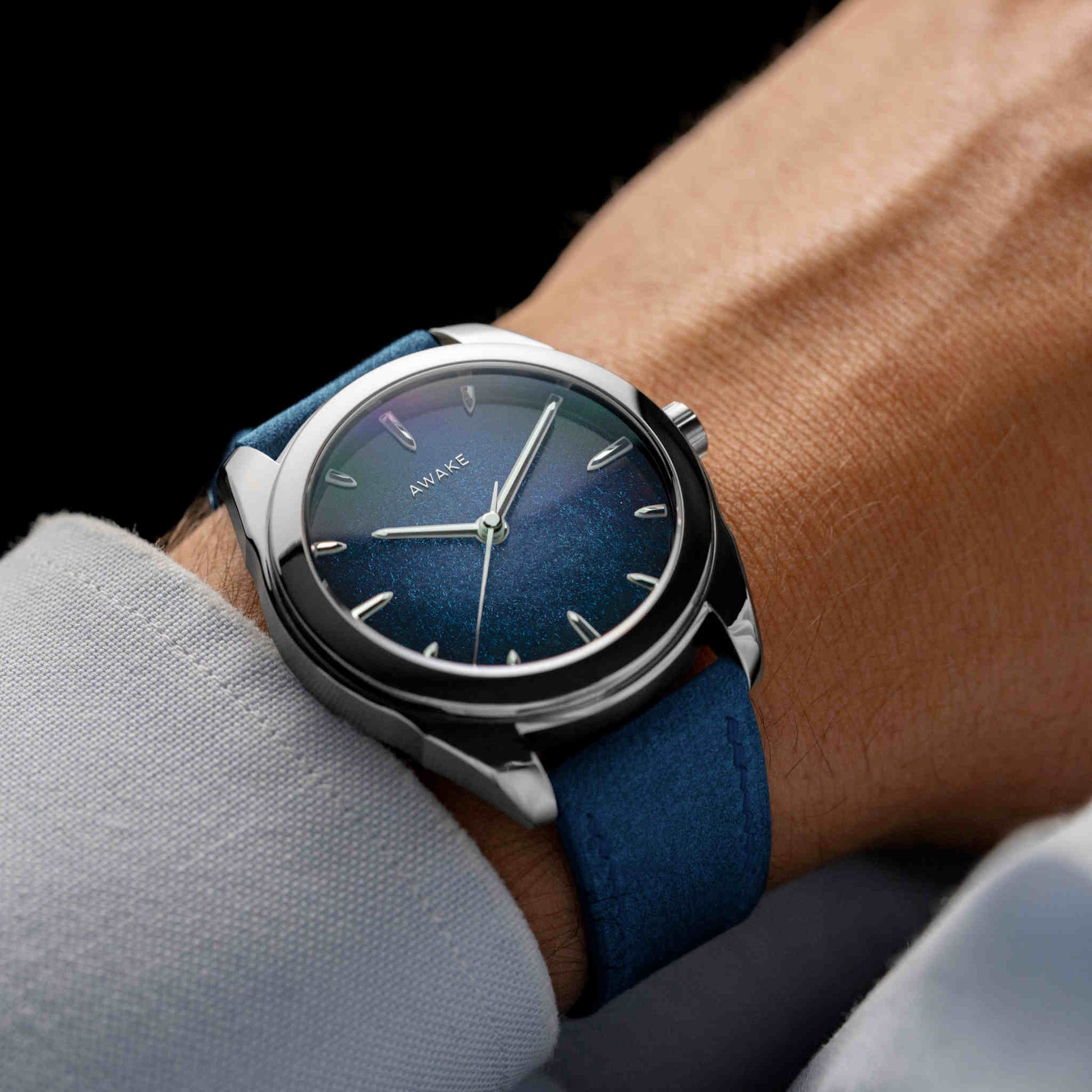 夜空を照らす月光のように、漆の層を透過した銀箔の光が穏やかに揺らめきます。青のグラデーションは職人の手による自然な筆致で生まれ、光の角度によって透明感を変える設計。見る時間や光源によって表情を変えるこのダイヤルは、まさに“時間を映す鏡”のようです。内部にはスイス・ラ・ジューペレ製キャリバーG101を搭載し、約68時間のパワーリザーブを確保。漆芸と精密工学が響き合う、静かな存在感を放ちます。