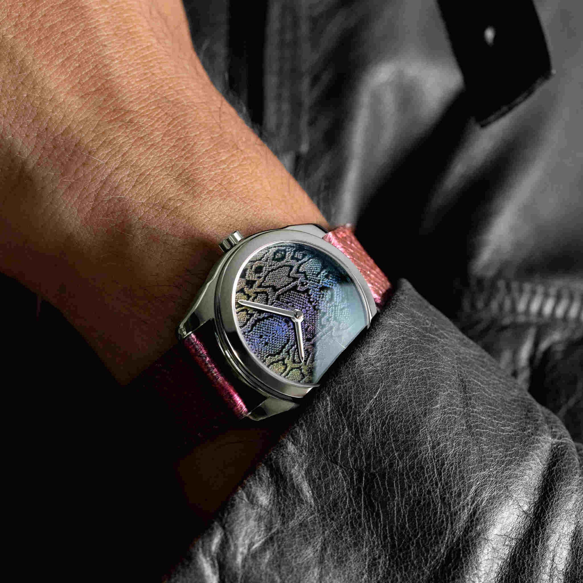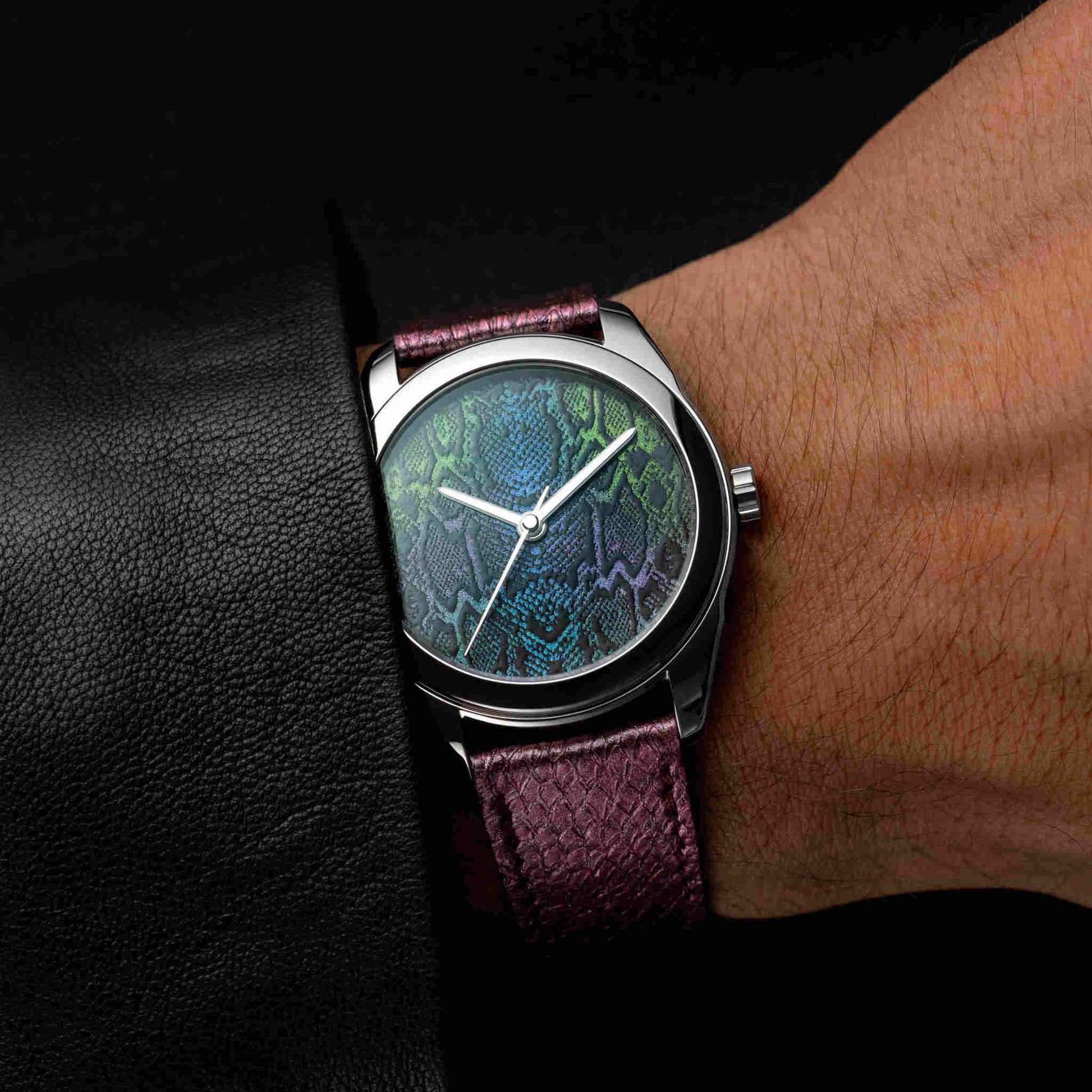 2025年の干支「蛇」をテーマに、ベトナム伝統の漆芸「ソンマイ」とスコットランドのアーティスト The Dial Artist の現代的な感性を融合した特別モデル。