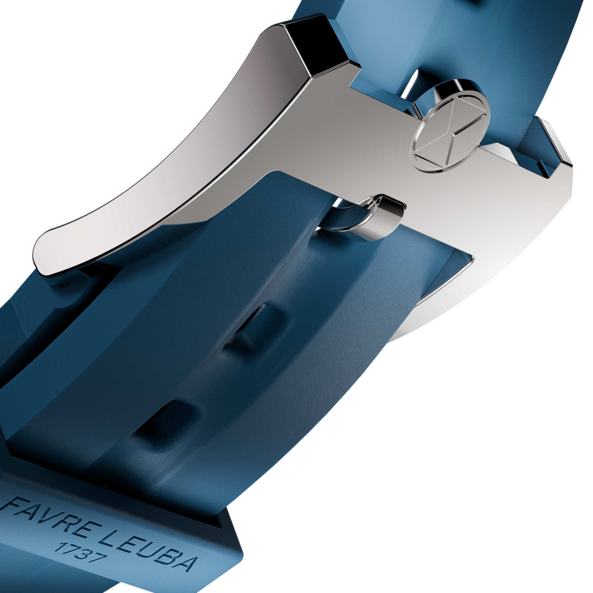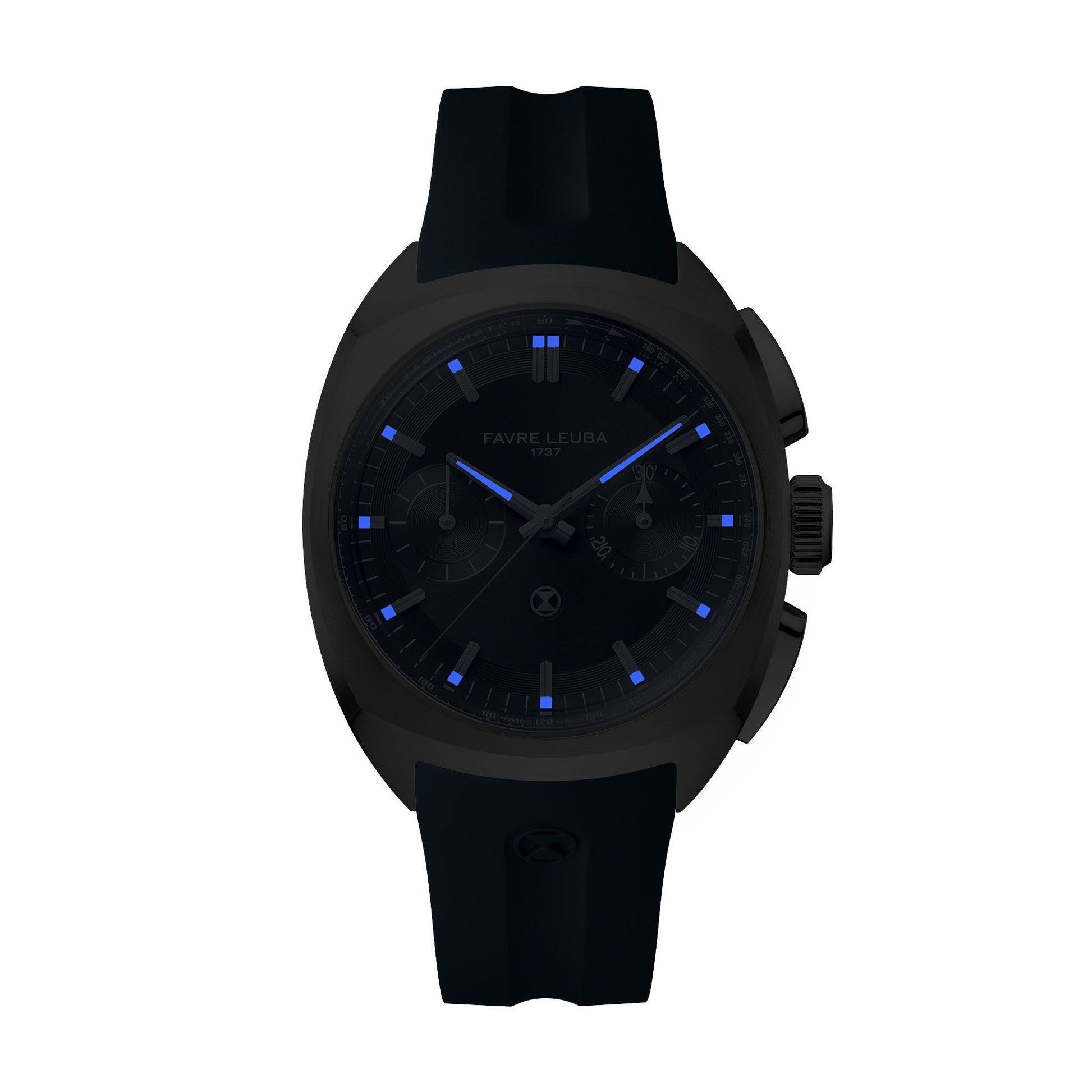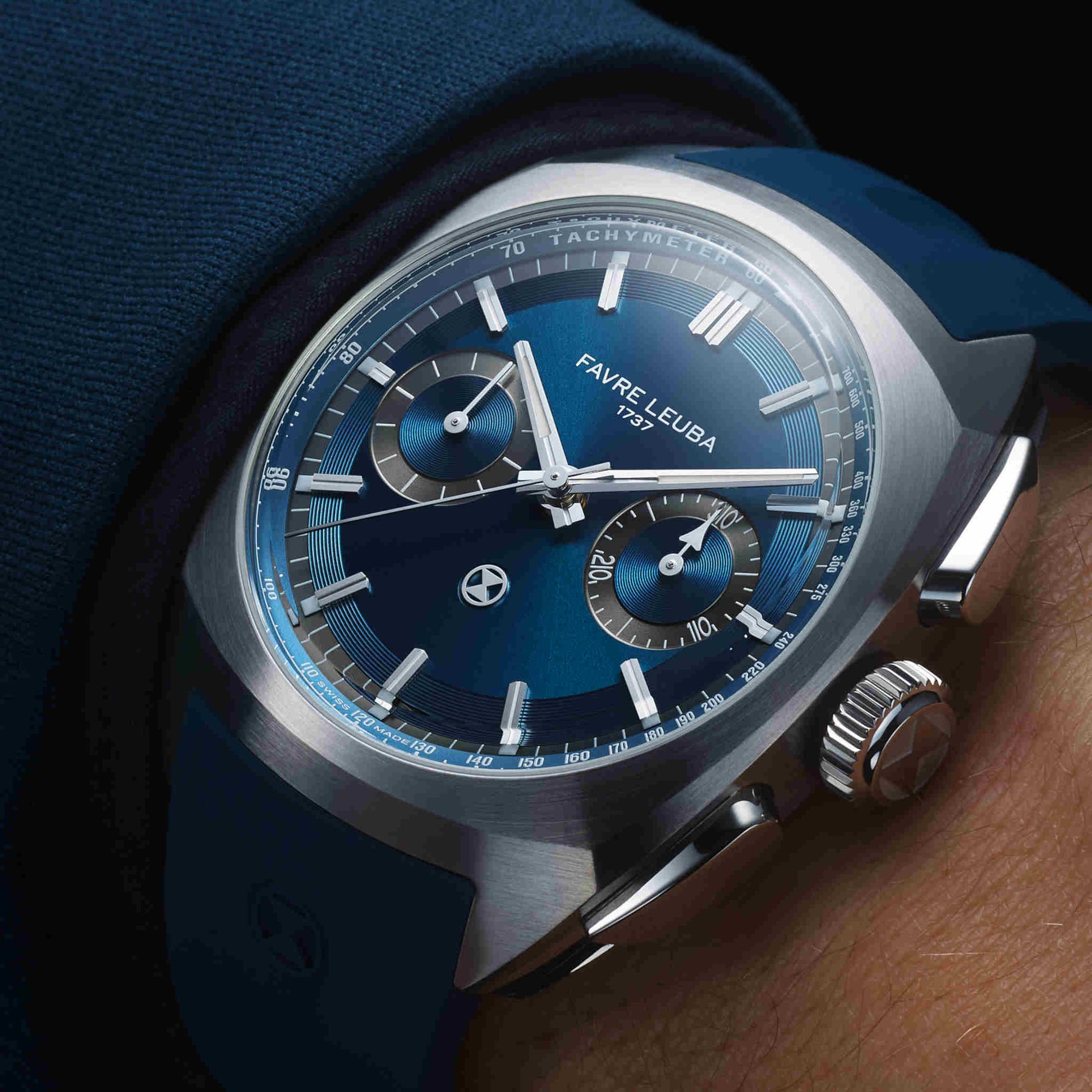 鮮やかなブルーダイヤルをラバーストラップで軽快に仕上げたチーフ・クロノグラフ。41mm径の316Lステンレススティール製ケースにサンレイ仕上げのダイヤルとコントラストの効いたサブダイヤルを配置。La Joux-Perret L113をベースとしたキャリバー FLC02を搭載し、コラムホイール制御で約60時間駆動。裏蓋はサファイアクリスタルで、精緻な仕上げを鑑賞可能。Super-LumiNova X1が暗所での視認性を確保し、100m防水とラバー仕様でアクティブシーンに最適です。