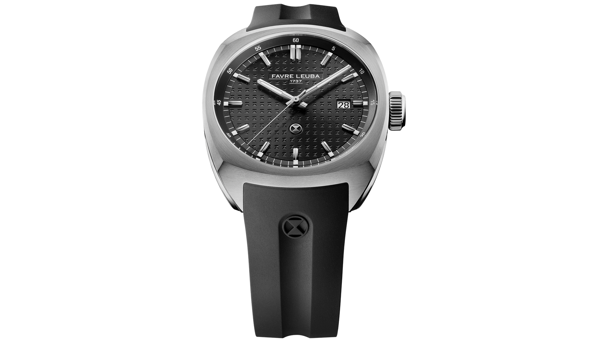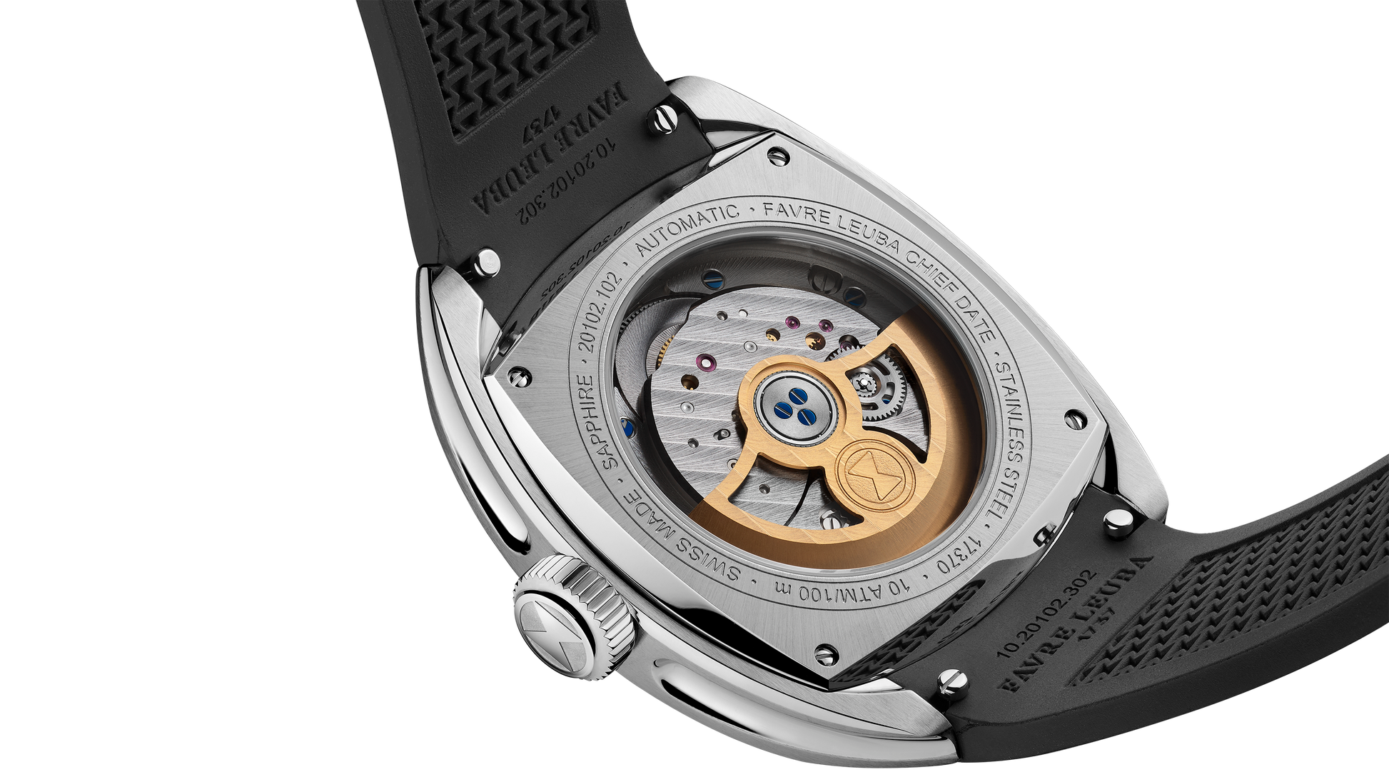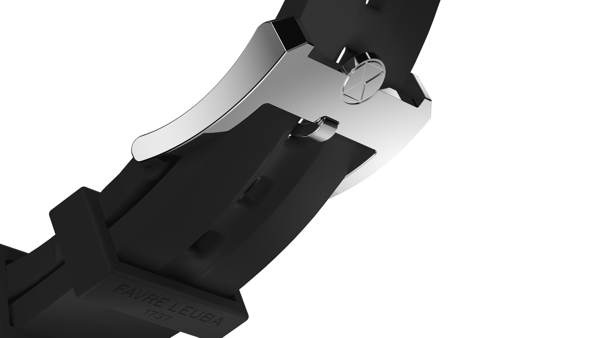 精悍なブラックダイヤルをラバーストラップで軽快に仕上げたチーフ・デイト。316Lステンレス製40mmケースに、タペストリー模様とサンレイ仕上げのダイヤルを搭載。ムーブメントはLa Joux-Perret G100をベースとしたキャリバー FLD03で約68時間駆動し、ケースバックのサファイアクリスタル越しに精緻な仕上げを堪能できます。Super-LumiNovaを施した針とインデックスは暗所でも高い視認性を発揮。100m防水と快適な装着感を持ち、日常からアクティブシーンまで幅広く活躍する一本です。