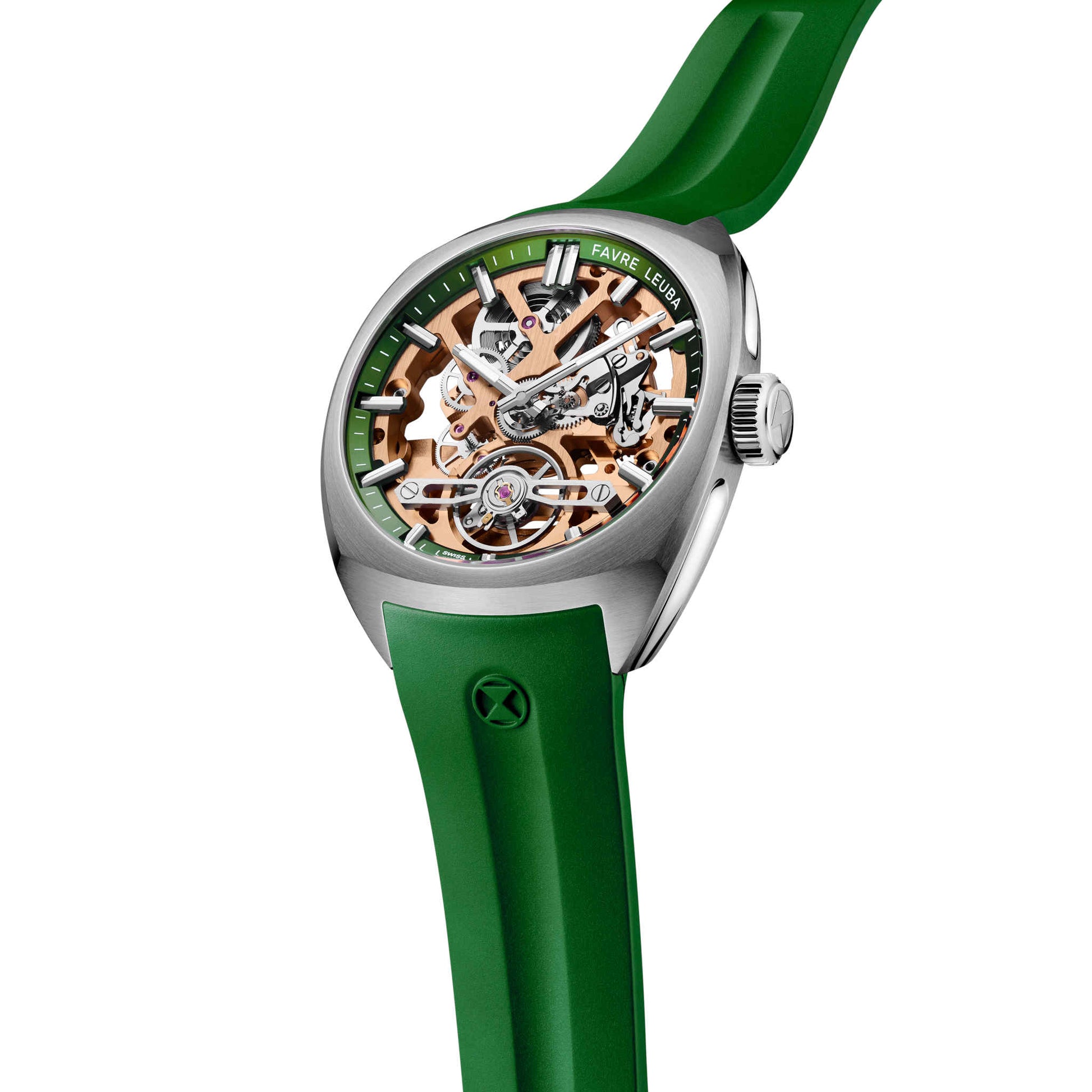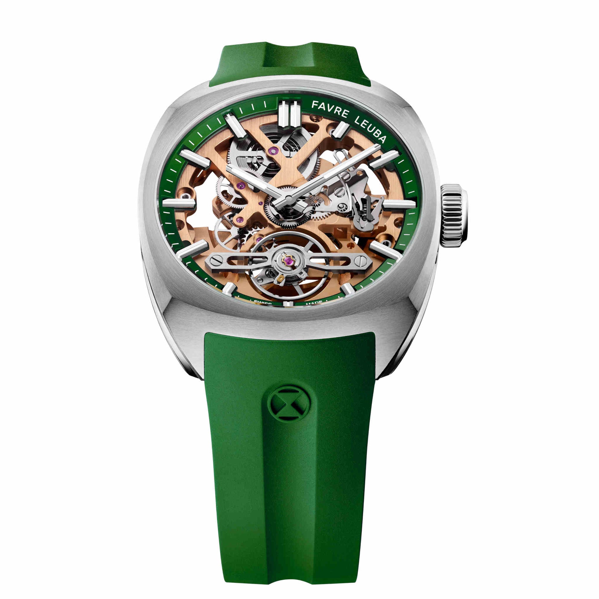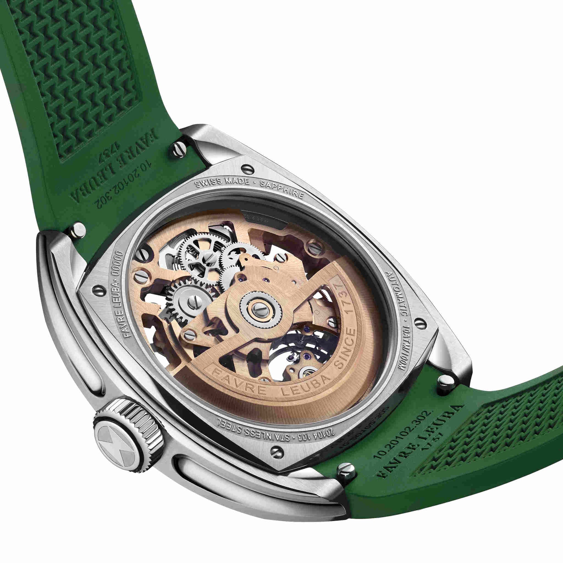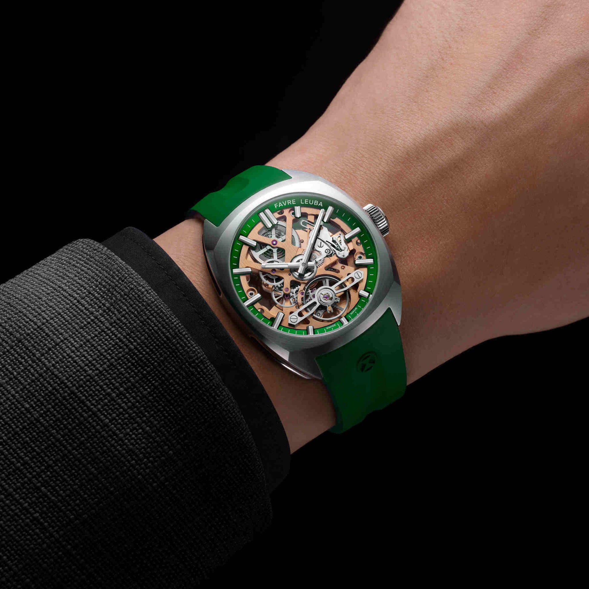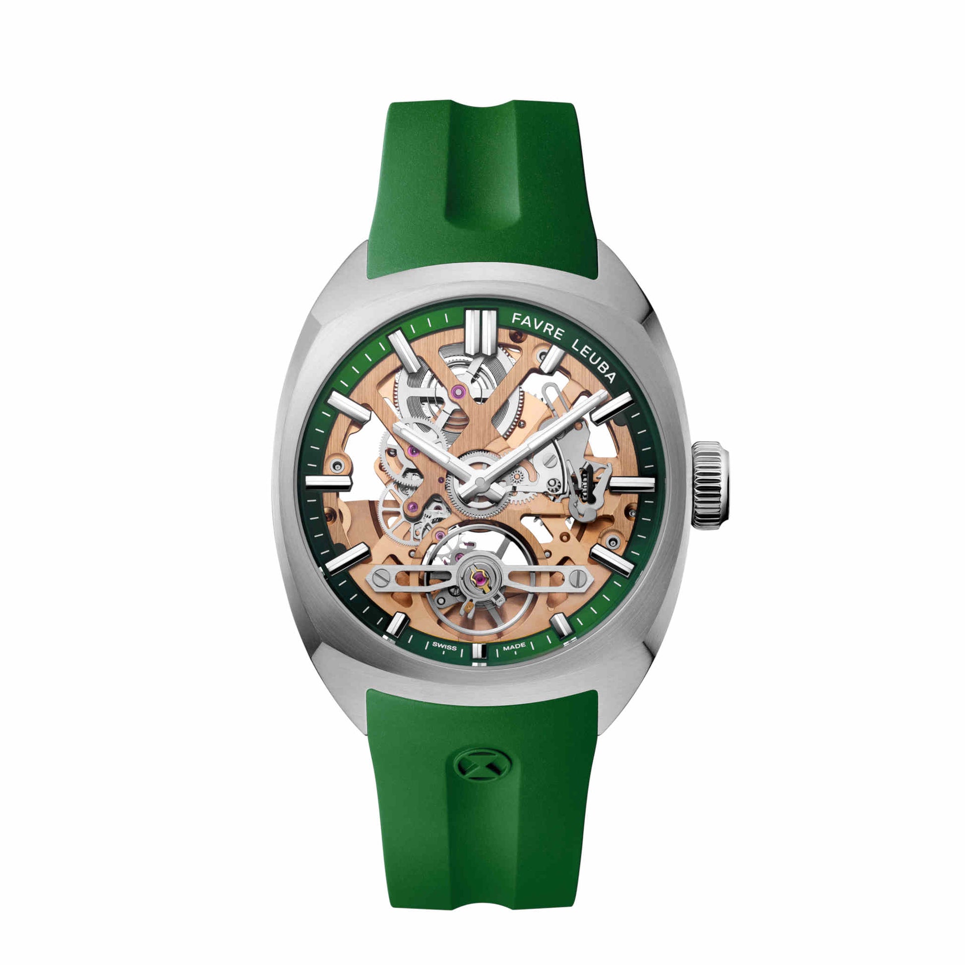 チーフ・スケルトン スティール グリーンは、ファーブル・ルーバ(Favre Leuba)が288年の歴史で初めて発表したフルスケルトンウォッチの代表的モデルです。