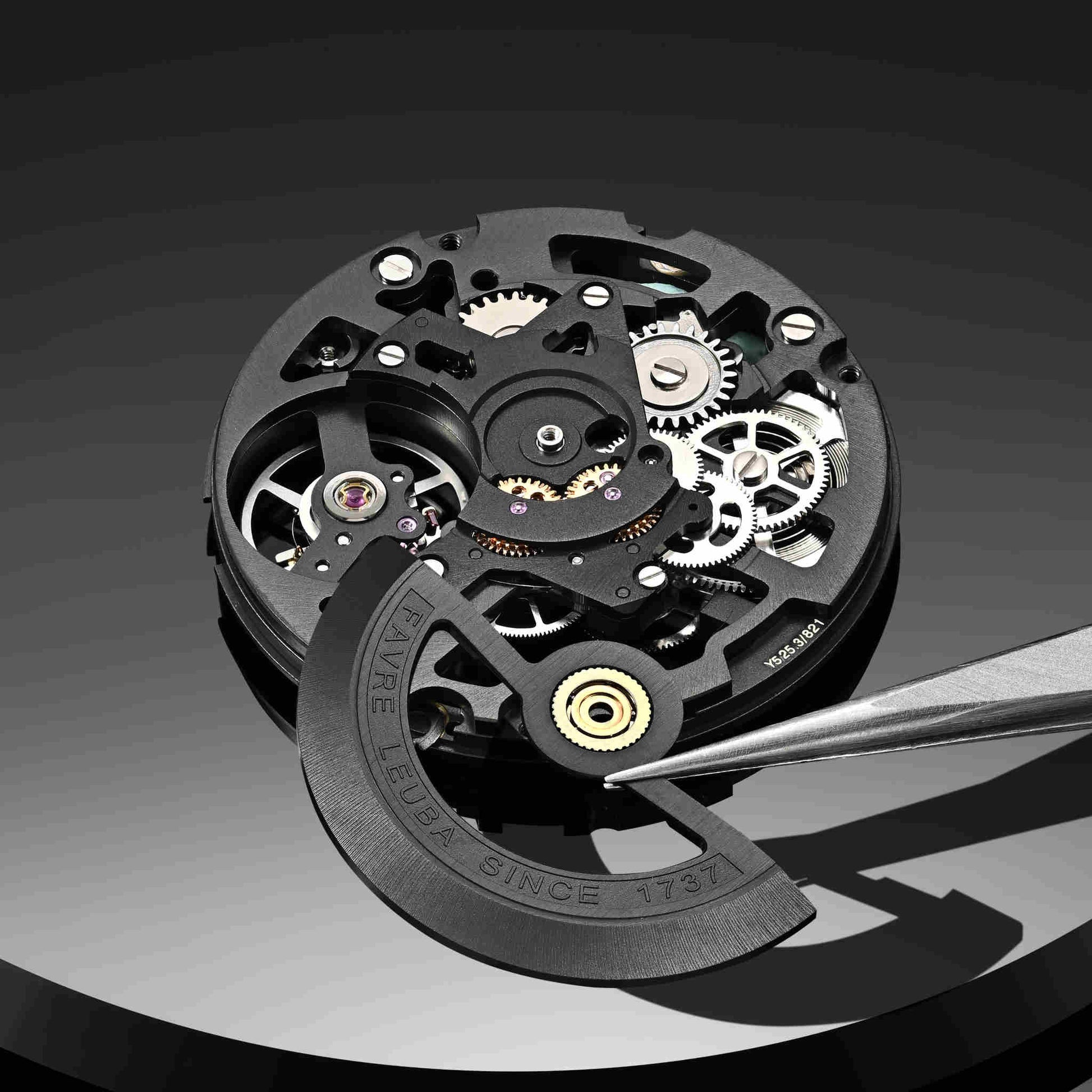ブリッジやローターのスケルトン加工は、回転や鼓動といったムーブメントの動きを立体的に捉え、スケルトンウォッチとしての醍醐味を最大化しています。