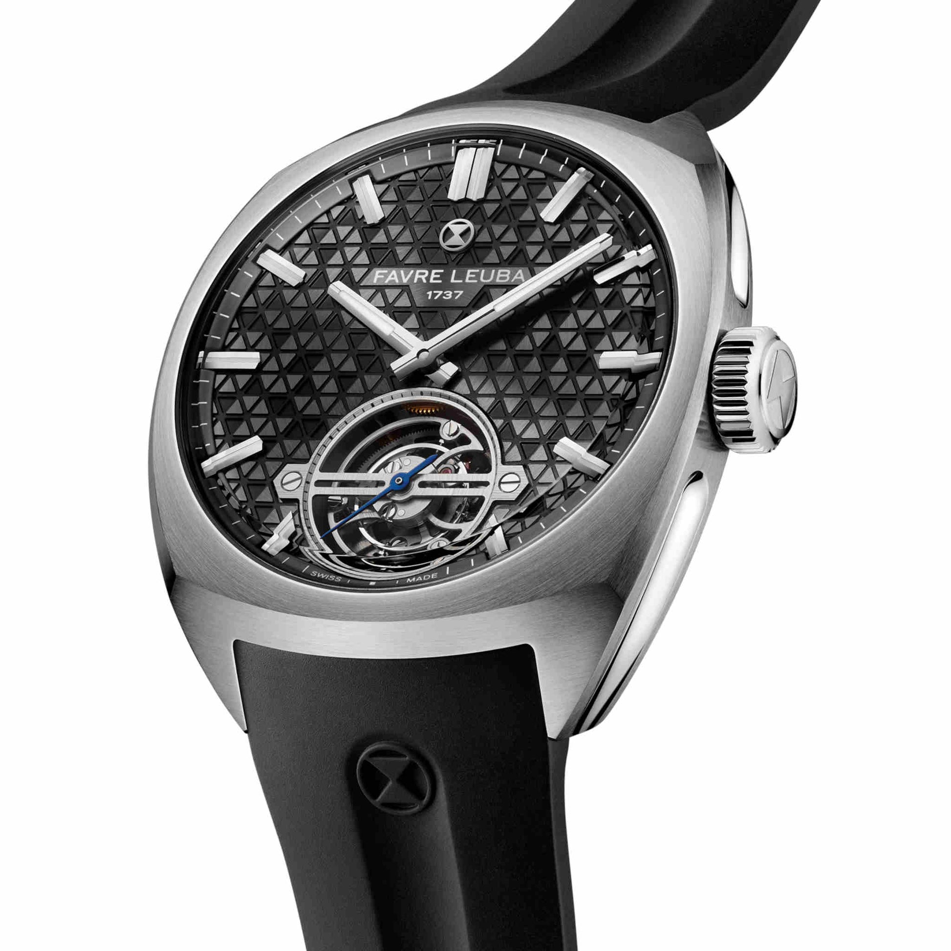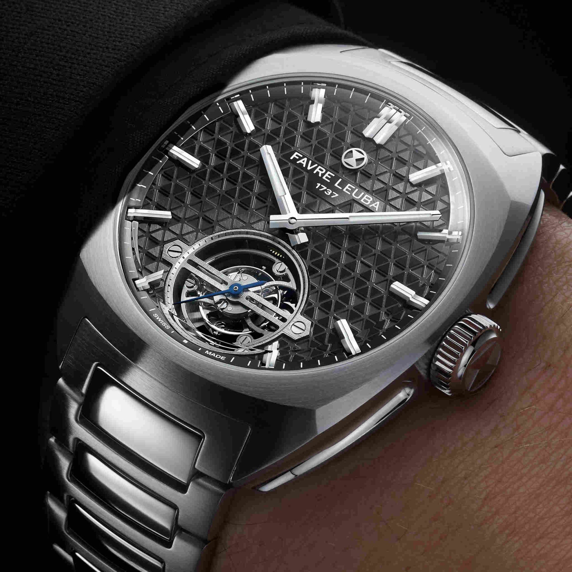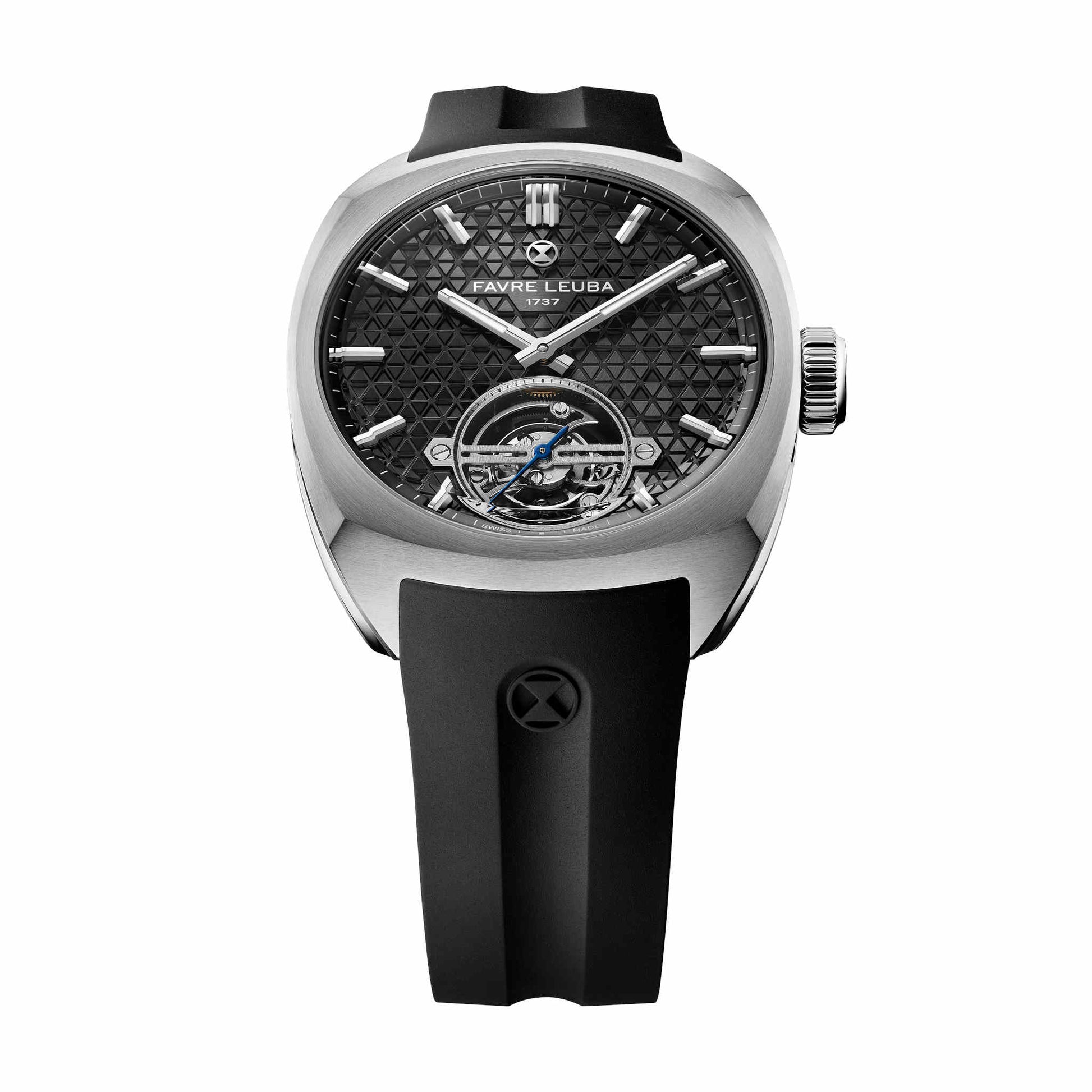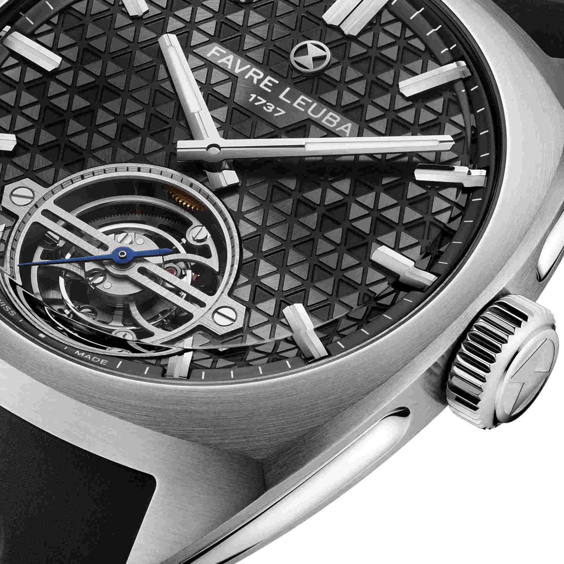 1737年創業のファーブル・ルーバが、マスター・ウォッチメーカー、 ジャン=フランソワ・モジョンとの共同開発により完成させた初のトゥールビヨン。「チーフ・トゥールビヨン」は、ブランドの象徴である砂時計エンブレムを立体的に表現した、独創的な三層構造のダイヤルを備えています。
