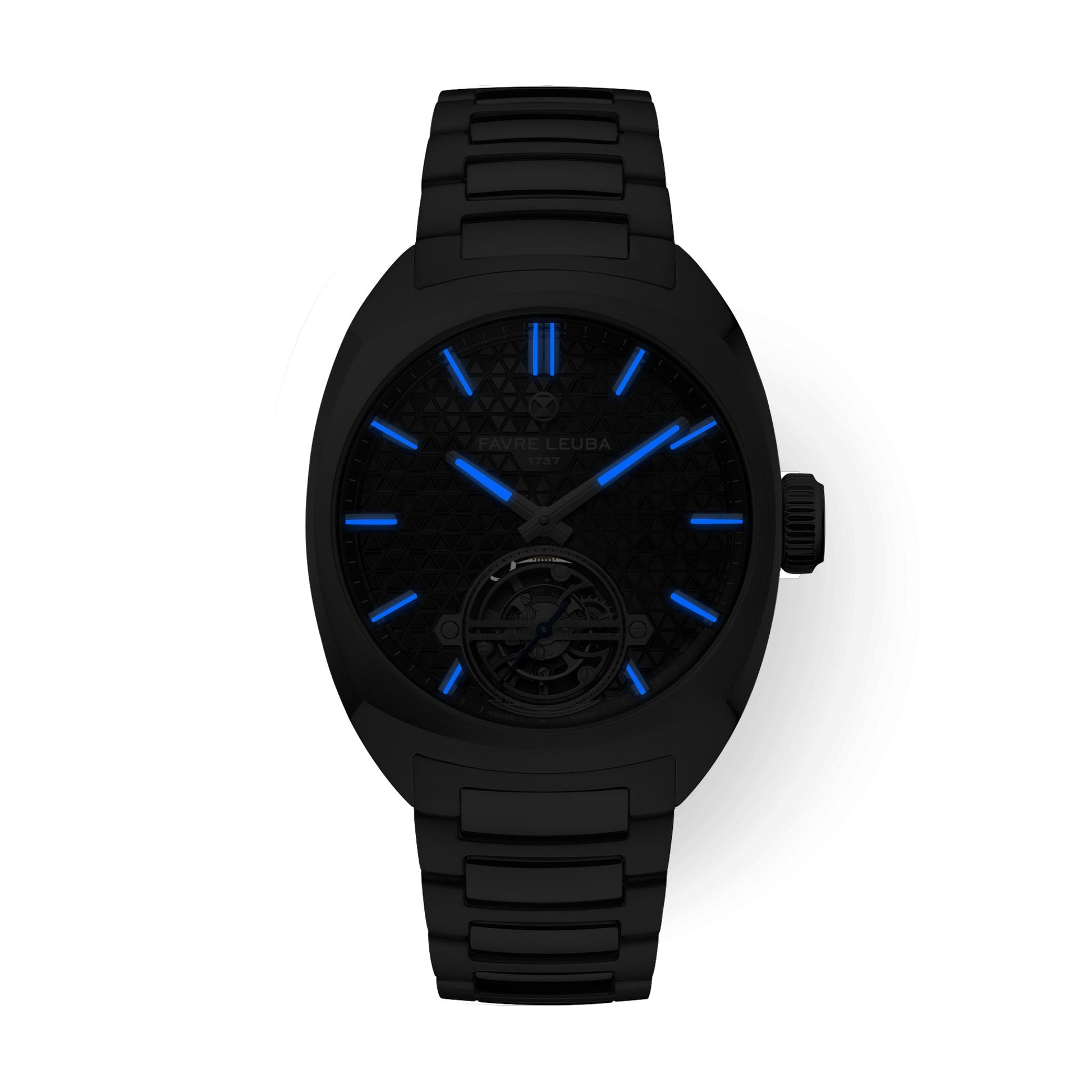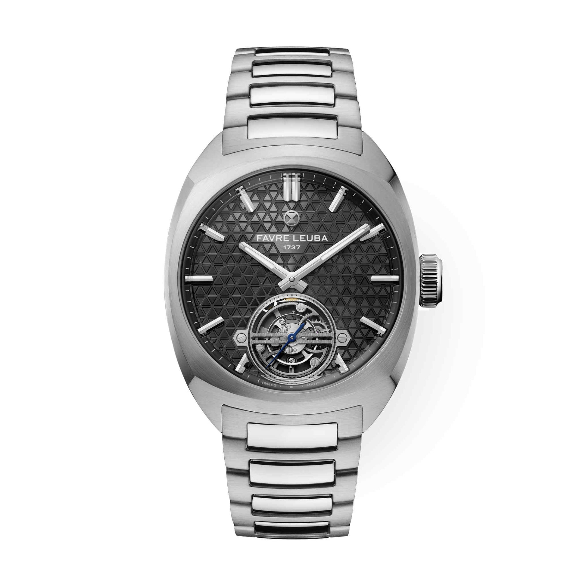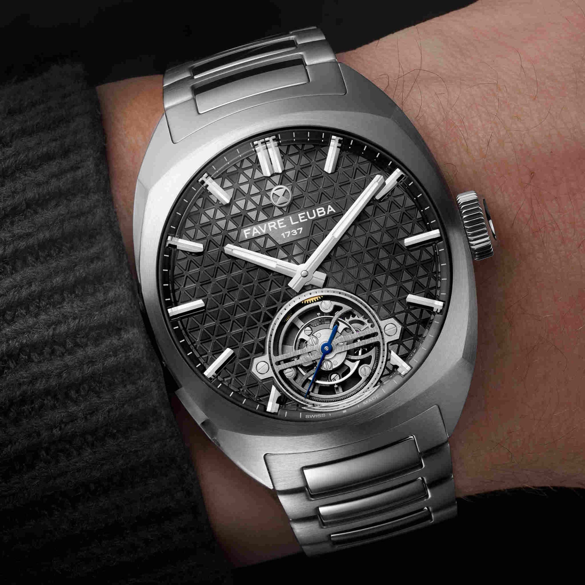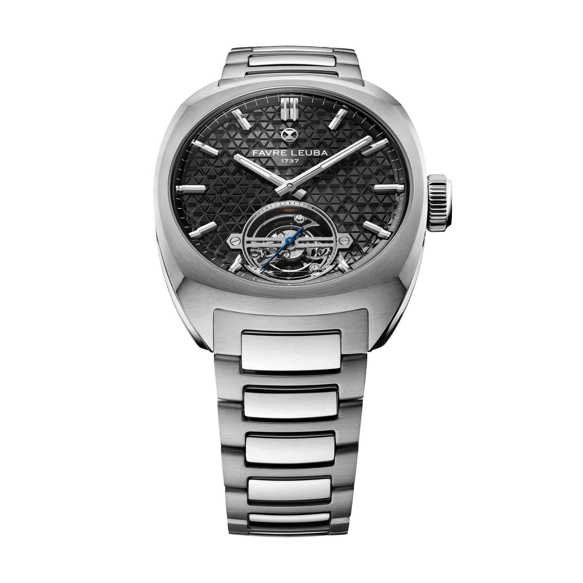 1737年創業のファーブル・ルーバが、マスター・ウォッチメーカー、 ジャン=フランソワ・モジョンとの共同開発により完成させた初のトゥールビヨン。「チーフ・トゥールビヨン」は、ブランドの象徴である砂時計エンブレムを立体的に表現した、独創的な三層構造のダイヤルを備えています。