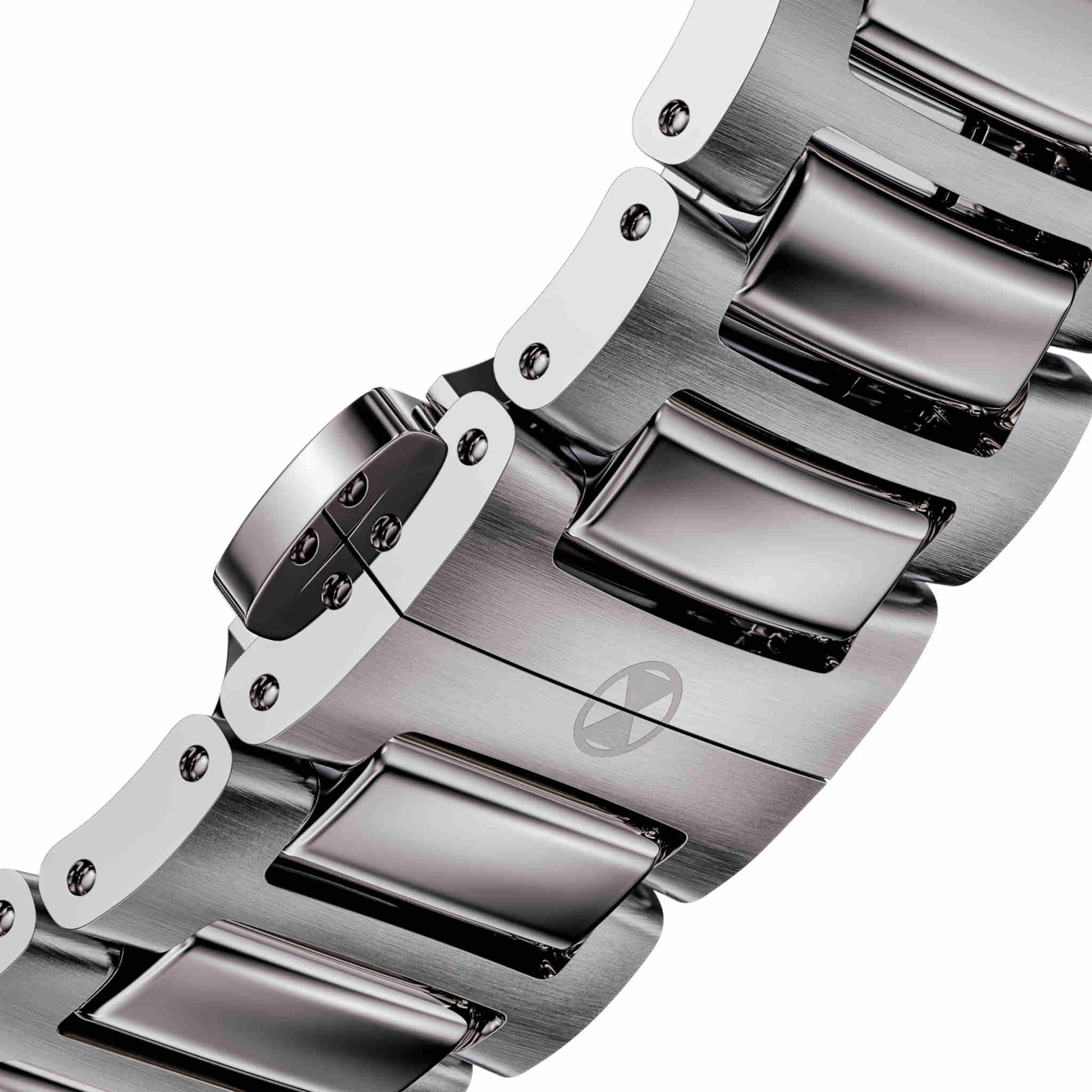 インターチェンジャブル/ブラッシュ&ポリッシュ仕上げのステンレススティール製一体型ブレスレット/