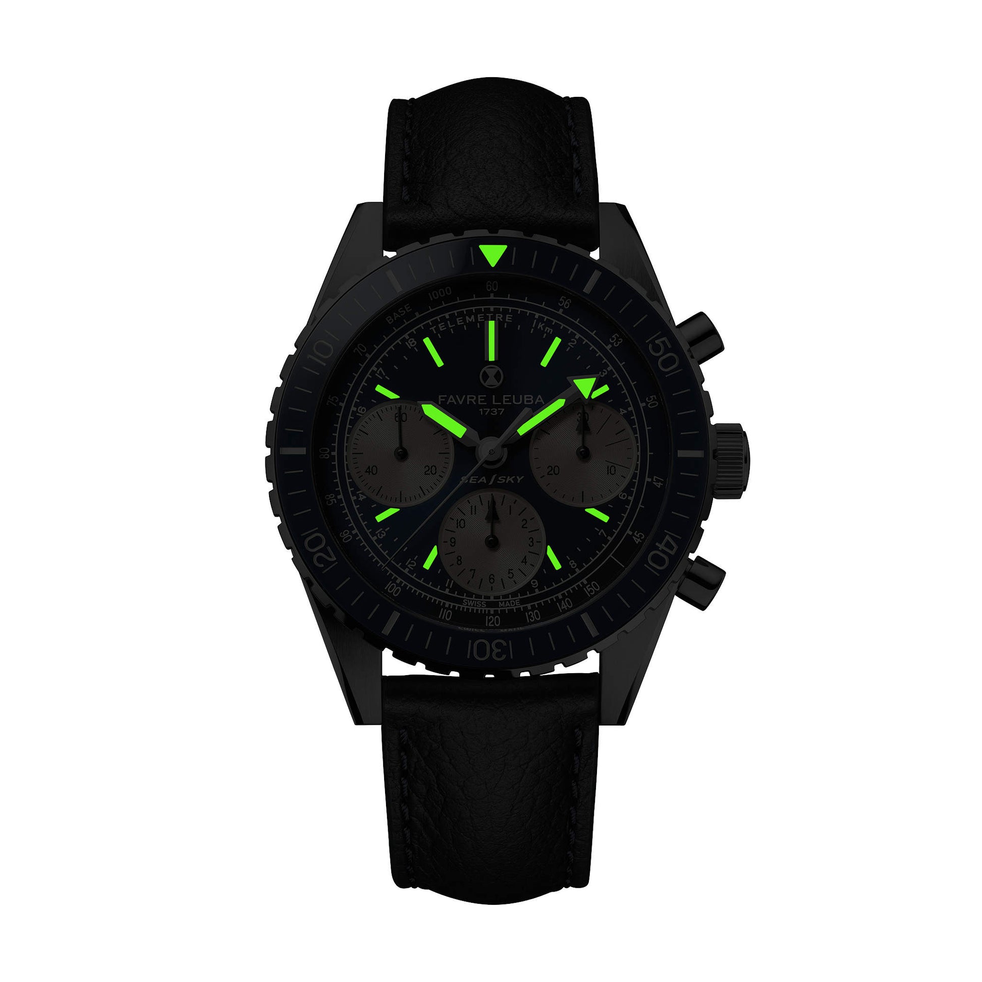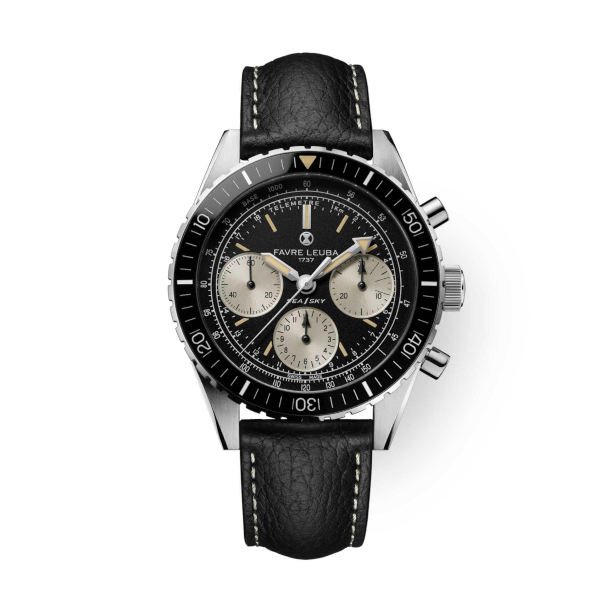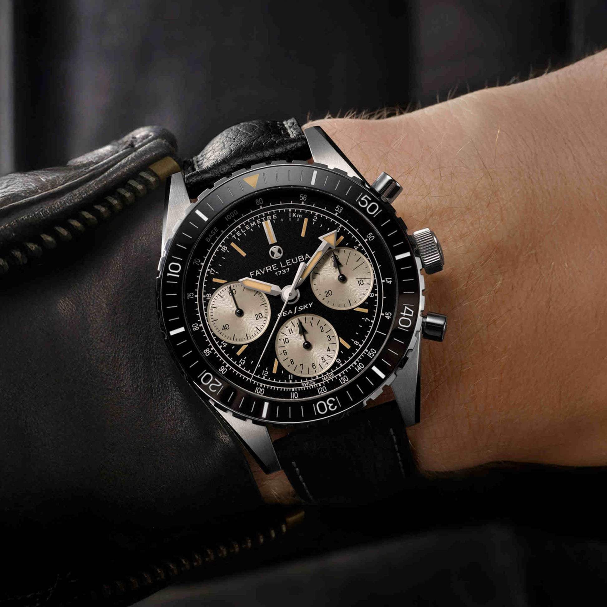 このモデルは、1960年代の名作を現代仕様で忠実に蘇らせた復刻クロノグラフです。40mmの316Lステンレススティール製ケースにはポリッシュ&ブラッシュ加工を施し、両面にあるサファイアクリスタルとセラミック製逆回転防止ベゼルで高い耐久性と視認性を確保。ムーブメントはLa Joux‑Perret L112をベースとしたキャリバーFLC01(約60時間パワーリザーブ)を採用し、タキメーターとテレメーターの機能を搭載。ブラックのレザーストラップがヴィンテージ感と落ち着きを演出し、フォーマルにもカジュアルにも馴染む一本です。